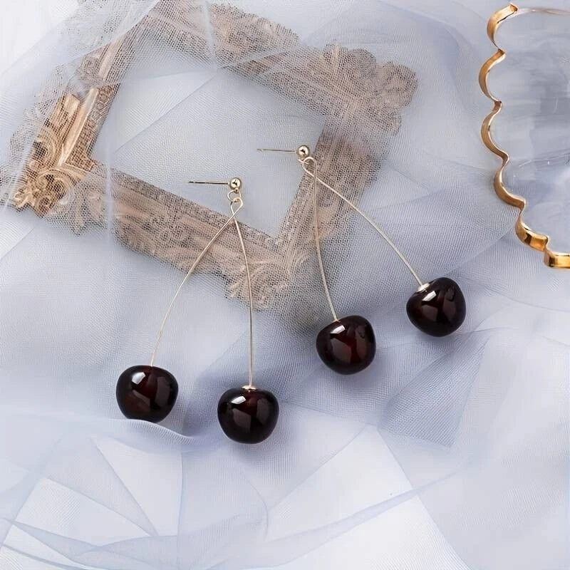 Two cherries on each earring and everything is looking up! All sizes are in the photo Comes in a deluxe velvet jewelry bag Picked and eaten as they are! Have a wonderful day!