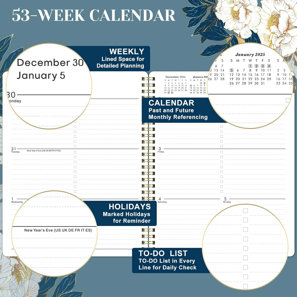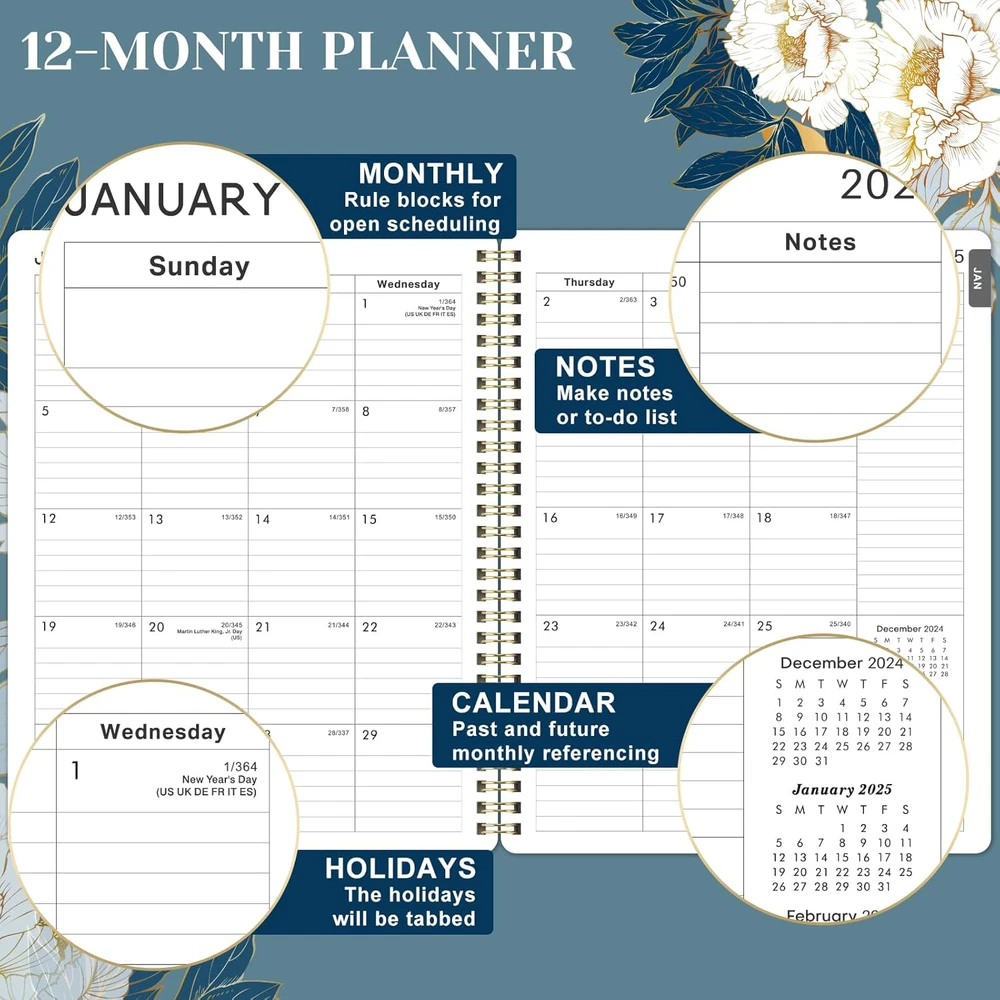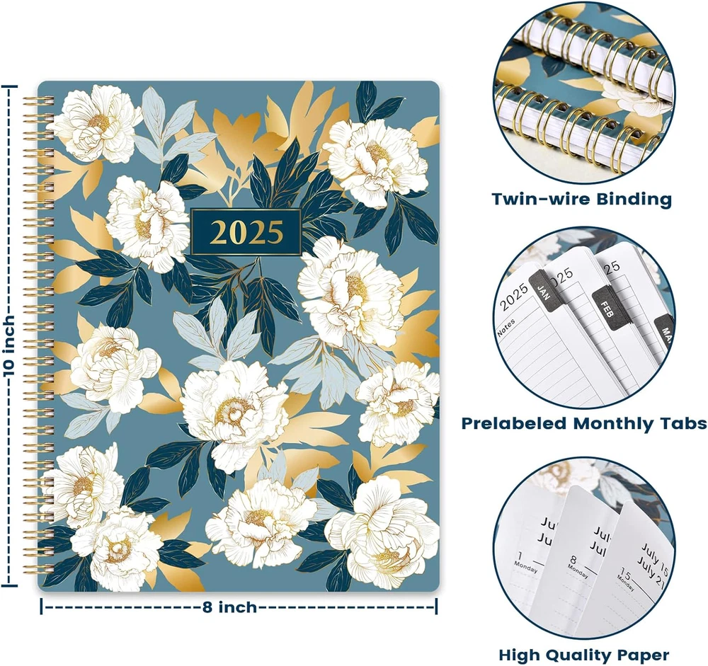 2025 Floral Planner 8" x 10", Weekly & Monthly Calendar Spiral Bound