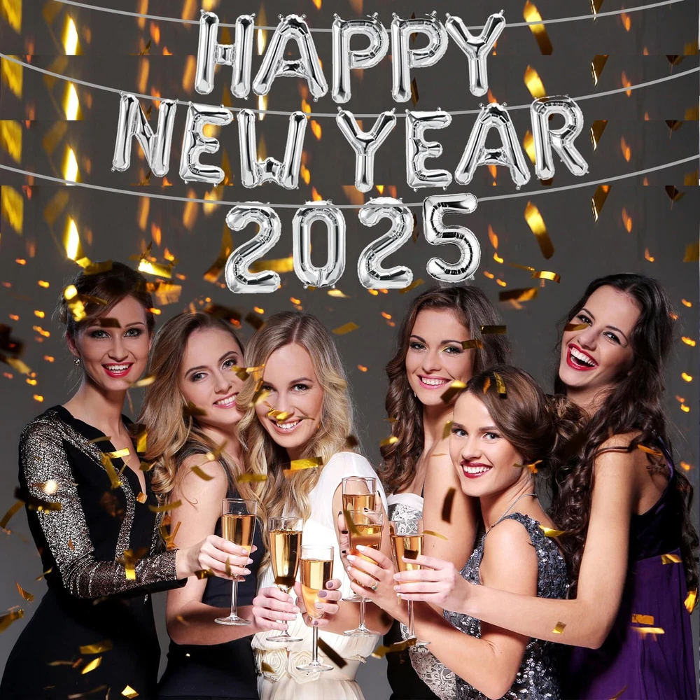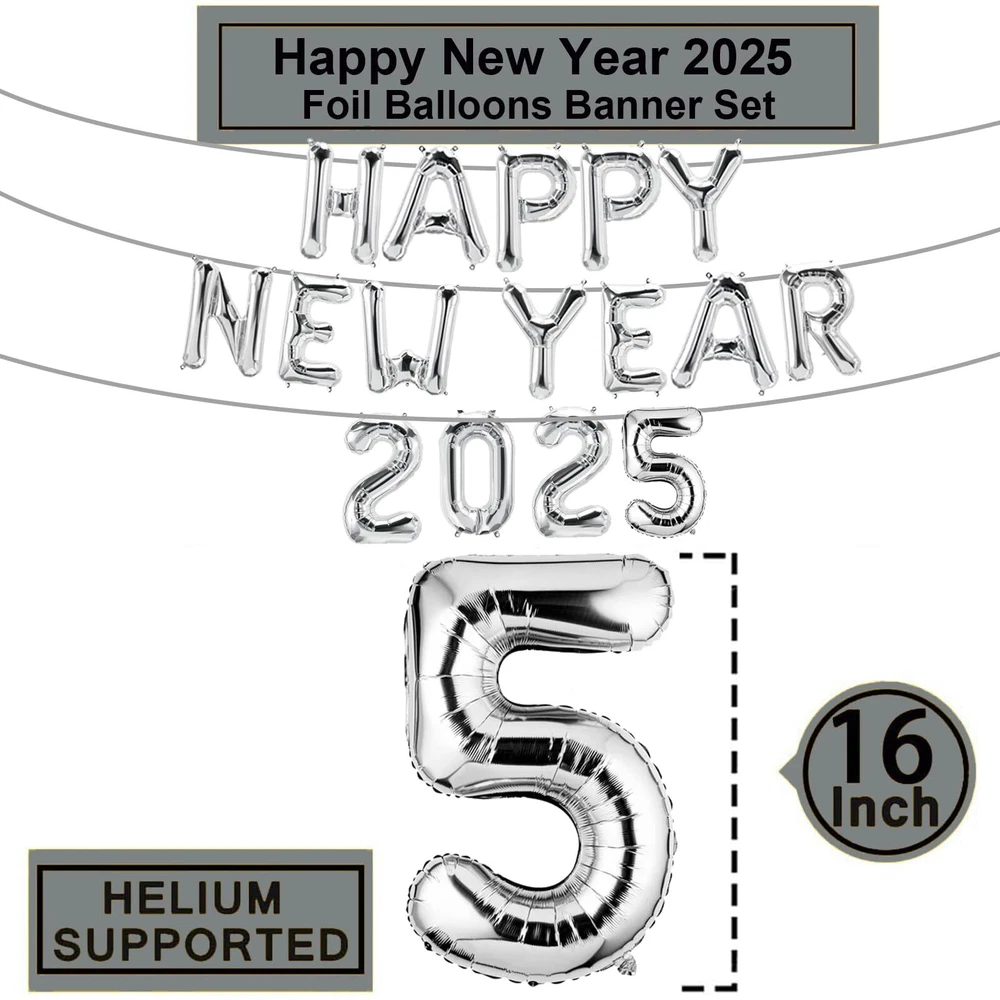 Suitable for - The New Year banners can be applied as birthday layout, indoor wedding roof decoration, stage decoration, guide decoration, Christmas party and New Year decoration and so on, making the event more eye-catching. New Years Party Decorations - Unique design,perfect for new years eve party,new years party decor,new years decorations,new years office or home decor,christmas party decorations,happy new year banner 2025 decor,farewell to 2024 and welcome to 2025 . Let Your New Year Celebrations begin with Sparkling Decorations! Begin your Special Celebration with a bang! Package Includes: Silver Number 2025 & HAPPY NEW YEAR foil balloons, 2 Inflatable Straw,10m/394 Inch Ribbon. Great Size & Reusable 32 Inch 2, 0, 2 & 5 LETTER BALLOONS can Float With Helium and Can be Reused Several Times. Suitable for - The New Year banners can be applied as birthday layout, indoor wedding roof decoration, stage decoration, guide decoration, Christmas party and New Year decoration and so on, making the event more eye-catching.