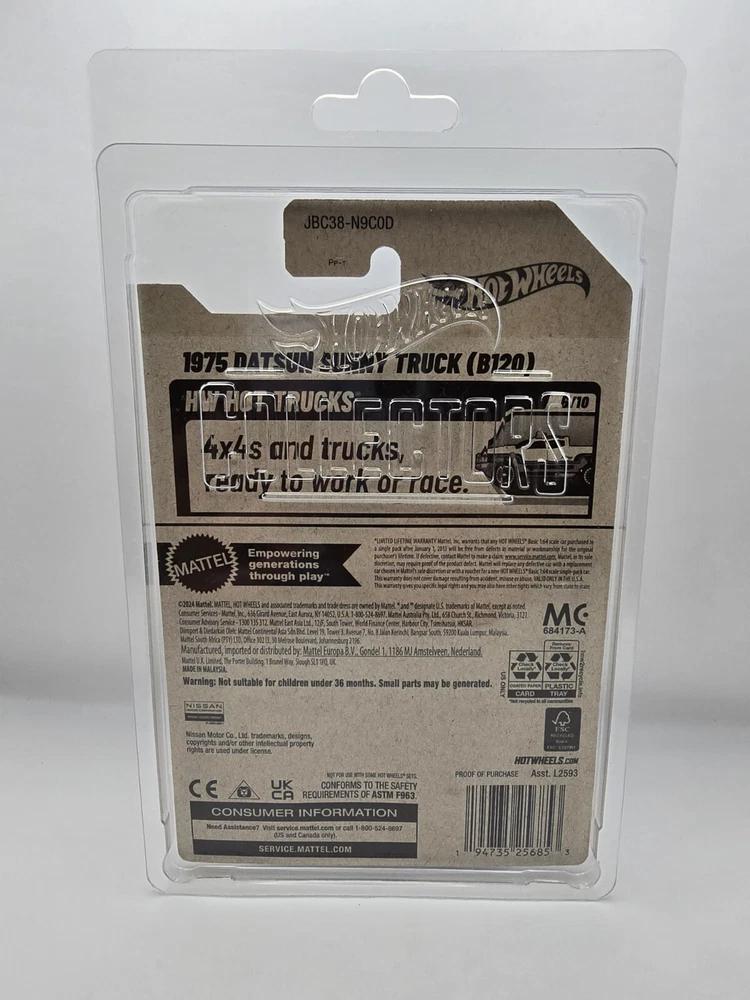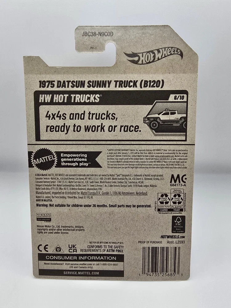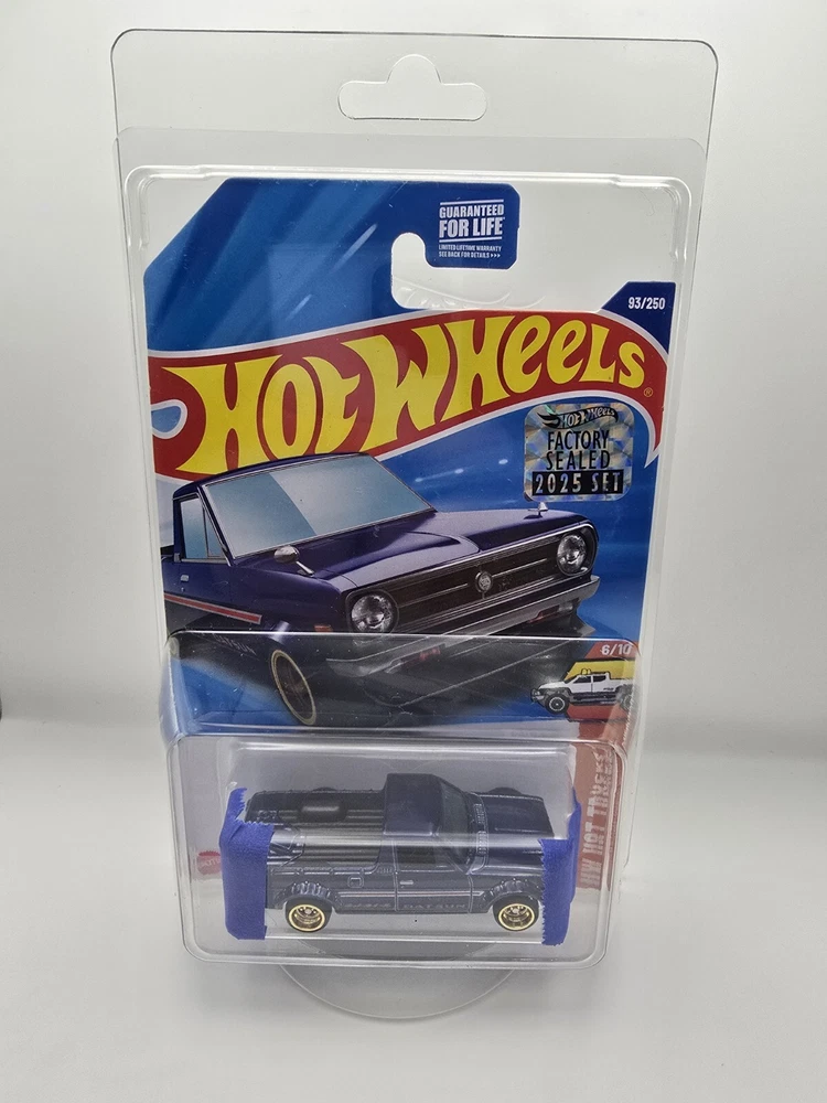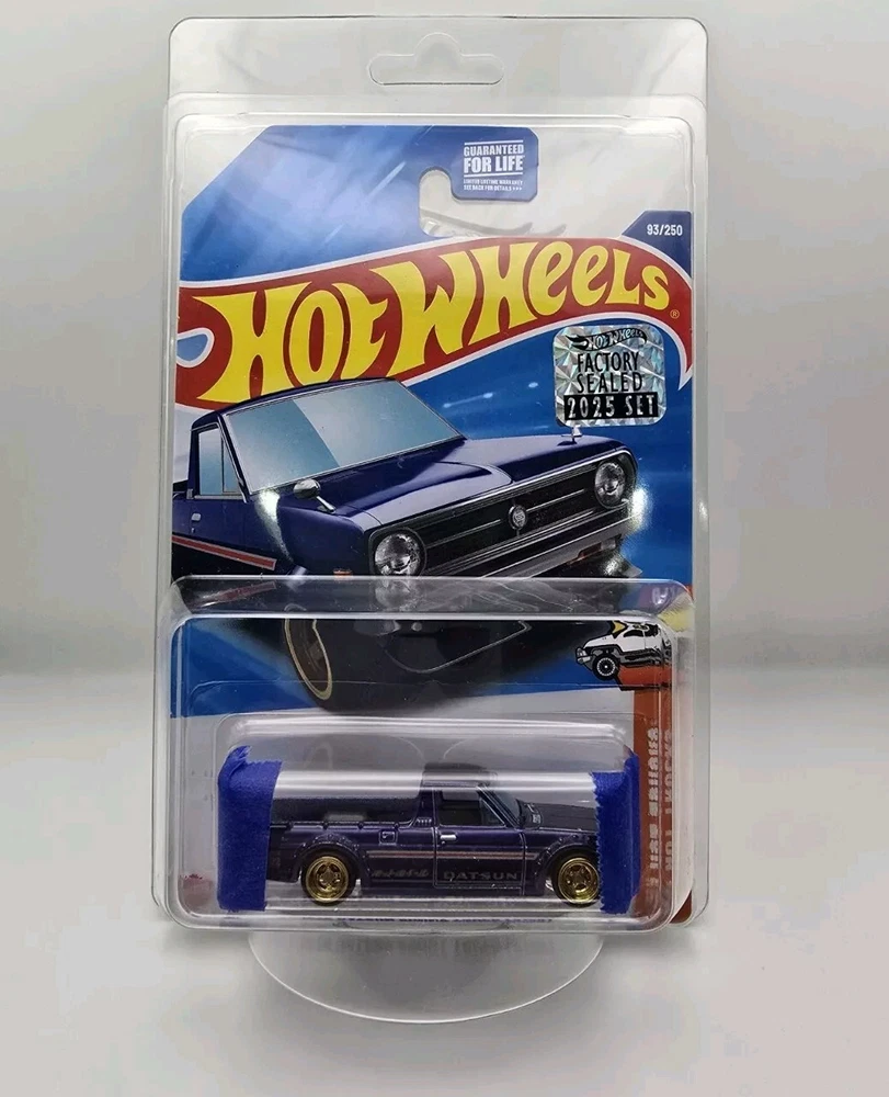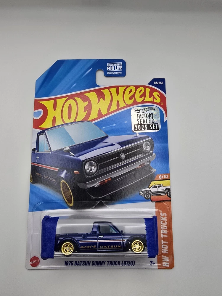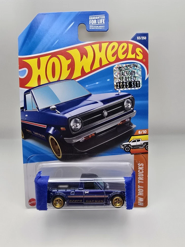 The 2025 Hot Wheels Super Treasure Hunt is a 1:64 scale diecast model of a 1975 Datsun Sunny Truck in blue. This factory-sealed item is part of the Hot Wheels series and a highly sought after super treasure hunt. Will be shipped with tape on blister.