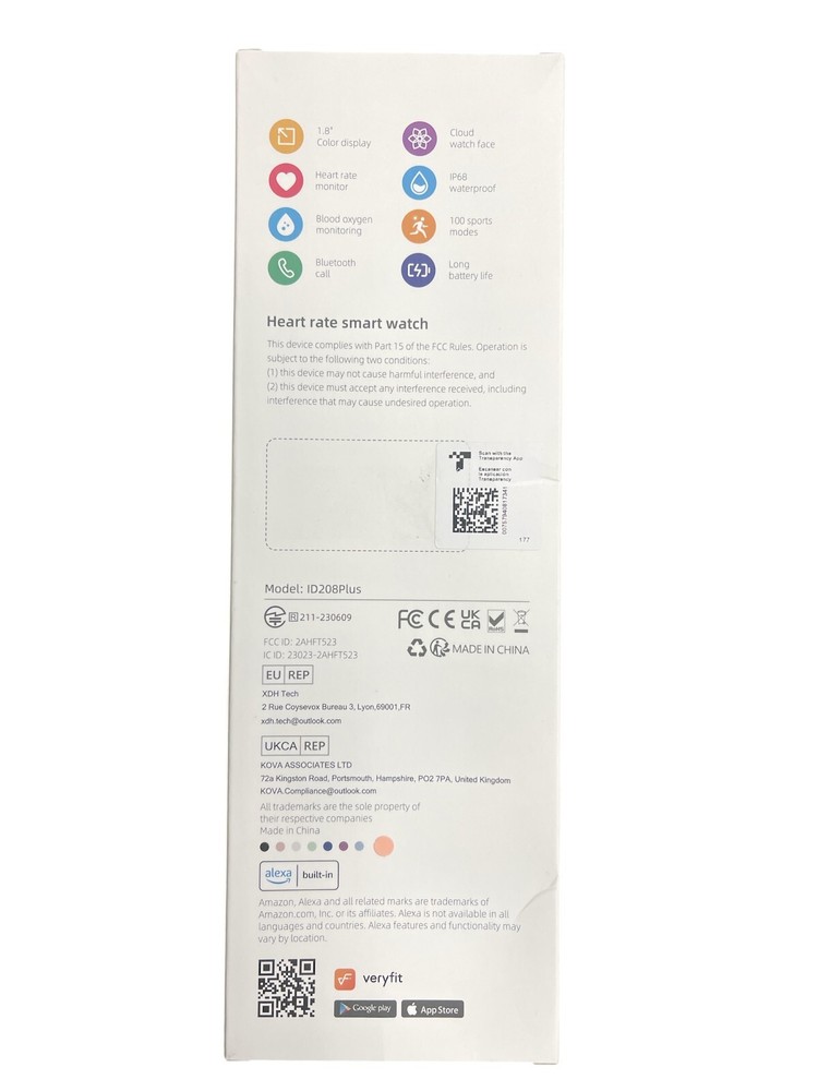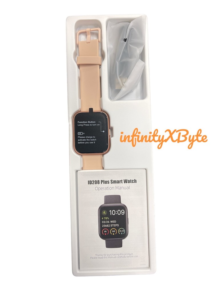 Explore the seamless blend of functionality and style with the InfinityXbyte Smart Watch, designed to cater to both men and women. The ID208 Plus model boasts a chic 40 mm aluminum case in a striking pink hue, complemented by a comfortable silicone band of the same shade. With its waterproof design, this watch is equipped to accompany you through all your activities, rain or shine.Connectivity is a breeze with Bluetooth-enabled features that seamlessly integrate with Android devices. The VeryFit Application ensures smooth interaction with notifications and fitness tracking. Whether for daily wear or specific workouts, this smartwatch is a versatile companion, packaged as a single unit. Download Veryfit APP connect via Bluetooth Return policy: 30 days - Buyer pay for return label