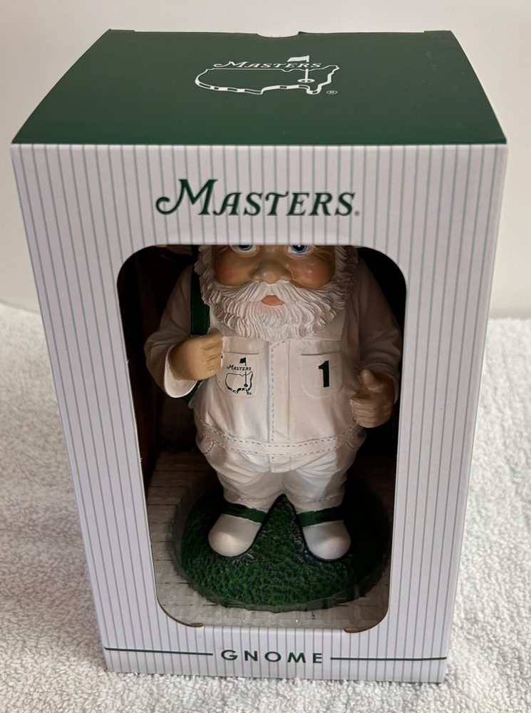 2025 Masters Golf Mini Gnome. Brand new! Unopened and undamaged box, officially licensed Garden Caddie golf gnome from the 2025 Masters Tournament. Picked up April 9 at Augusta National's Masters on-grounds Golf Shop. Gnome is approximately 7" high. Photo is of actual product.