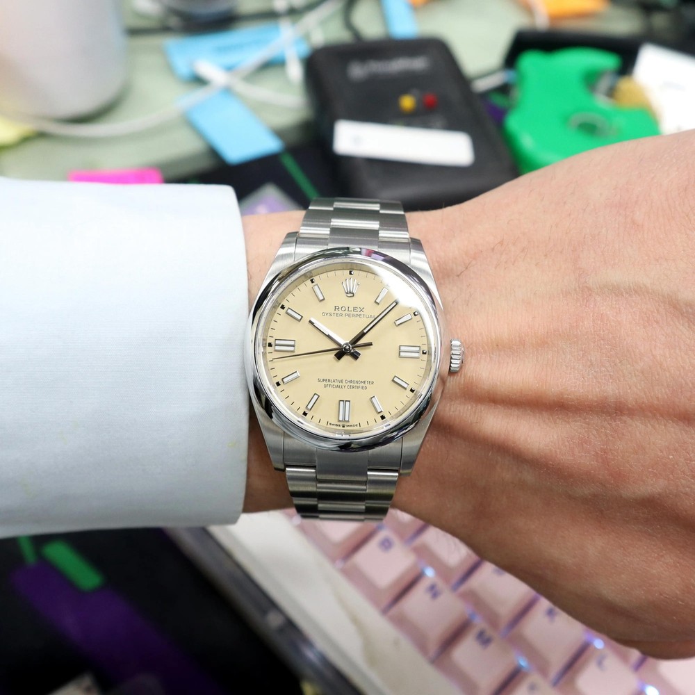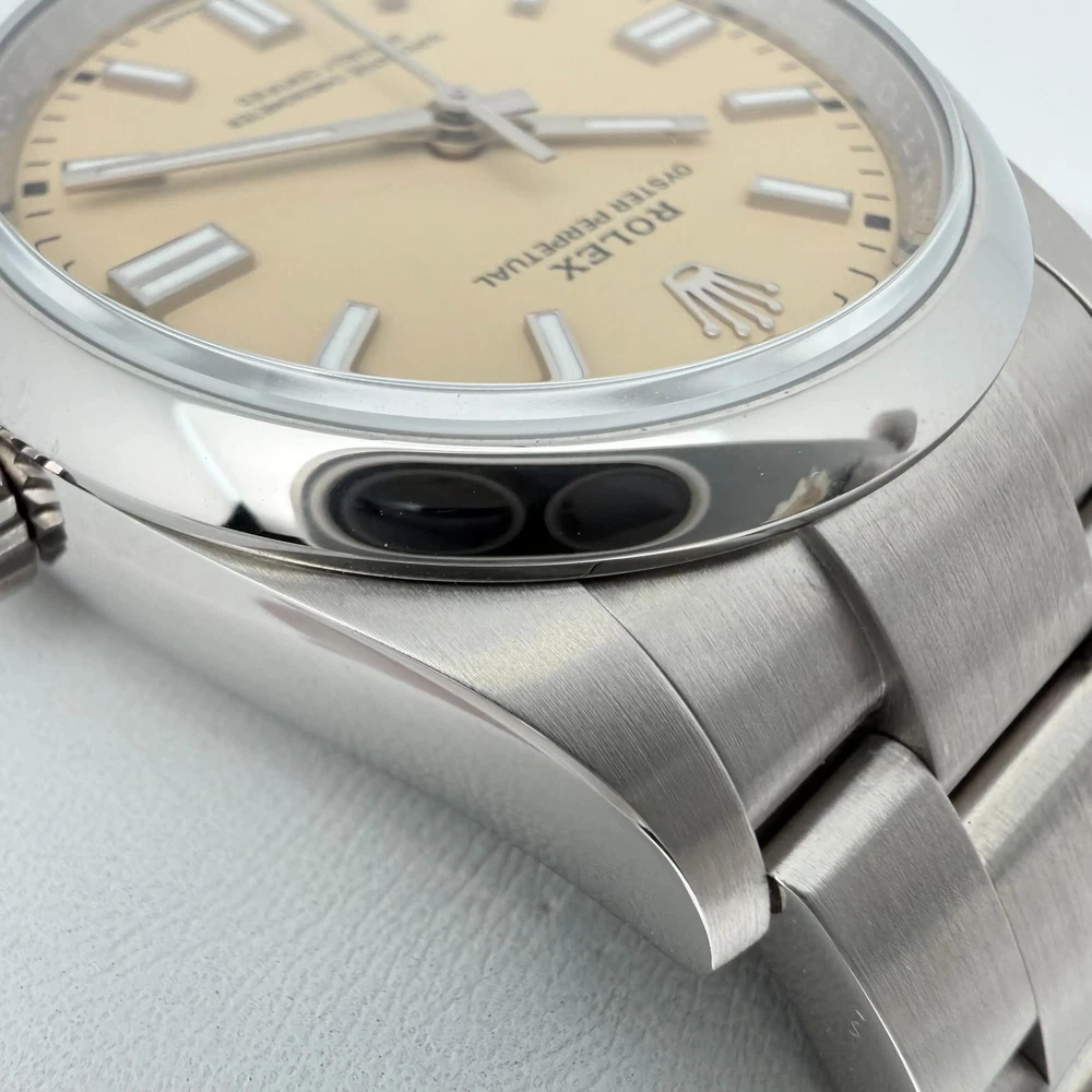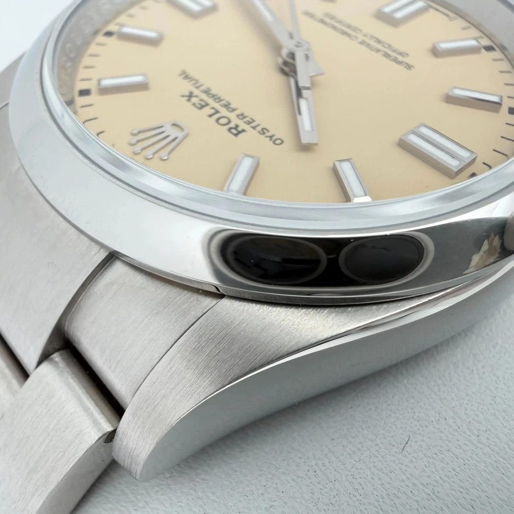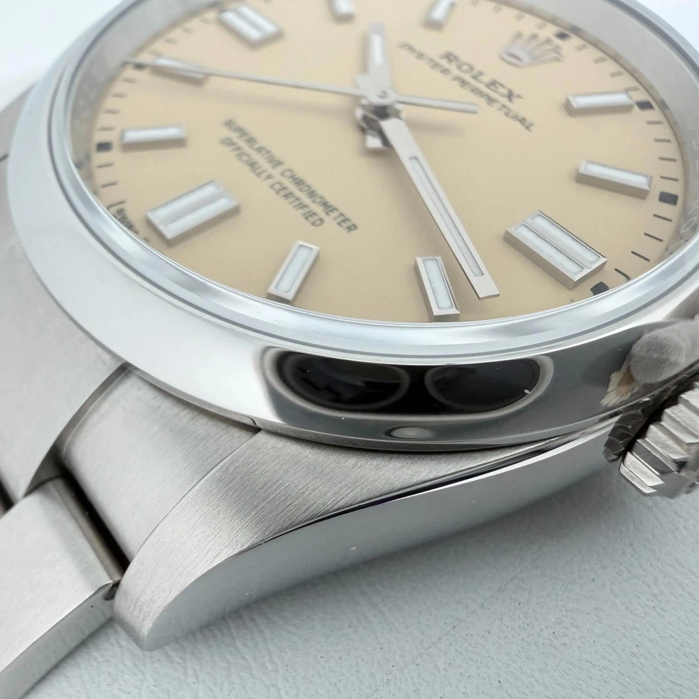 New. Comes with original box, manuals, both hang tags and warranty card dated 2025. Backed by a 1-year warranty and a 30-day return window. 2025 New Rolex 126000 Oyster Perpetual 36 Steel Beige Sticks Dial Watch Description New. Comes with original box, manuals, both hang tags and warranty card dated 2025. Backed by a 1-year warranty and a 30-day return window. Ships from Address 608 5th Ave, STE 408 - New York New York, 10020 Phone 16465368182 Condition Unworn New. Comes with original box, manuals, both hang tags and warranty card dated 2025. Backed by a 1-year warranty and a 30-day return window. Highlights Weight 124g Case Size 36 mm Wrist Fit up to 7.25 inches Box Yes Papers Yes SKU 046651 General Info Brand Rolex Type Wristwatch Department Men Model Number 126000 Country/Region of Manufacture Switzerland Style Luxury Model Rolex Oyster Perpetual Vintage No Features/Other Details Year Manufactured 2025 Customized No Handedness Right With Original Packaging Yes With Booklet Yes With Papers Yes SKU 046651 Features Luminous Hands, Screwdown Crown, Self-Winding, Swiss Made, Swiss Movement, Water-Resistant, Fixed Bezel, Sapphire Crystal Band/Bracelet Details Band Color Gray Band Material Stainless Steel Max Wrist Size up to 7.25 inches Closure Hidden Fold Clasp Band Type Bracelet Band Width 15.5 mm Lug Width 20 mm Wrist Fit up to 7.25 inches Case Details Case Material Stainless Steel Case Color Gray Water Resistance 100 m (10 ATM) Watch Shape Round Caseback Solid Case Finish Polished Case Size 36 mm Case Thickness 12 mm Bezel Details Bezel Type Smooth, Fixed Bezel Color Gray Display Dial Color Beige Dial Pattern Sunburst Display Analog Indices Stick Indexes Movement Movement Mechanical (Automatic) Number of Jewels 31 Jewels Movement Caliber Rolex Calibre 3230