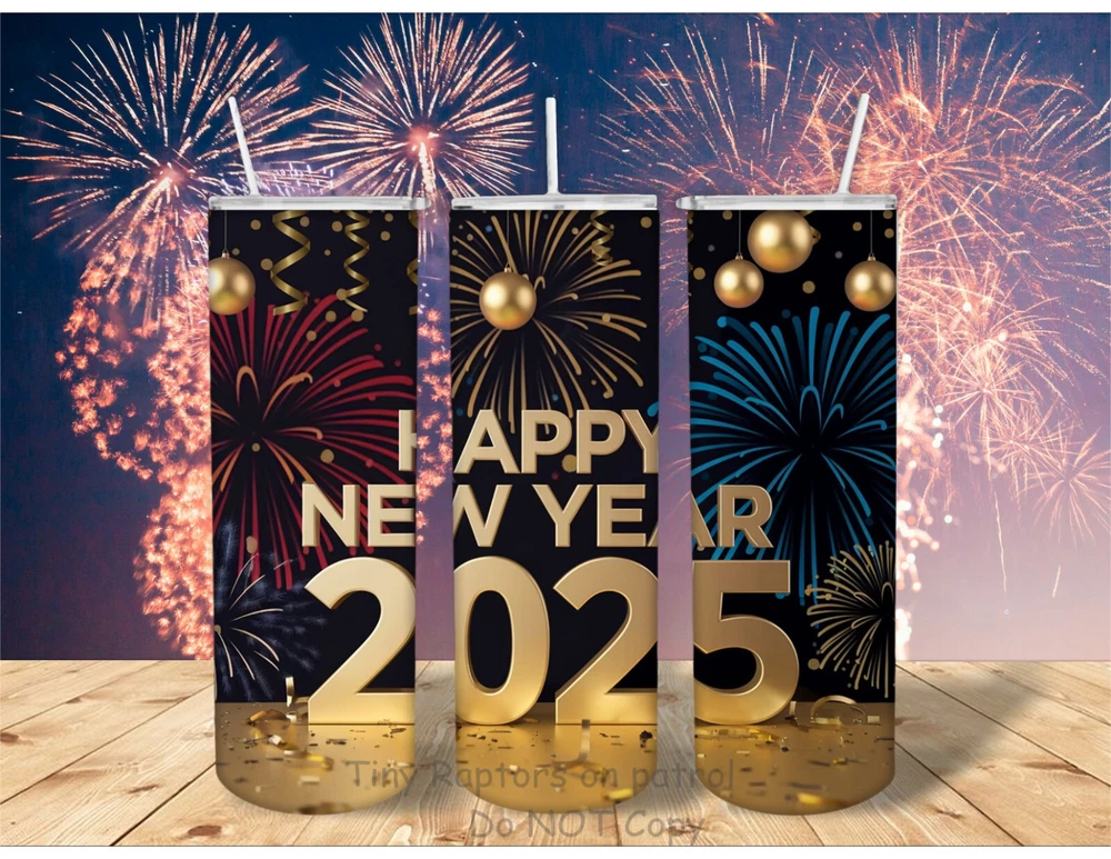 Hello and welcome:) This is for 1 NEW YEARS, 2025 themed stainless steel tumbler, your CHOICE from the styles shown. They are made soon as possible, so please allow me the time to make them for you:) Please see pictures for designs. Be sure to see the other listings for lots more if you would like, the digital images are much better than trying to make every item and taking photos, esp when there are thousands, and they are made fresh at time of the order so no waste. ~~~Tumbler details~~~ Choice of style 20 oz stainless steel STRAIGHT sides (NOT TAPERED) each is rubber bottomed as well BPA free lid and straw care instructions sent along reusable for a long time sublimated so no peeling, cracking or fading due to the nature of sublimation no 2 will be exactly the same, each is unique ATTN!! We all have different computers/monitors, so every pic is NOT exactly as it will be, computers and monitors see colors differently, but the pics help you see the best possible pic i can offer. Shipping is FREE with ground advantage, but you may choose priority mail for faster delivery, that will not speed up the time to make them just a day or so faster once in USPS hands. Shipping is calculated based on zip codes and actual weight for priority mail. Always ask if you have questions, i cannot help if i do not know, please ask before buying:)) I look forward to making something special for you, have a great day and thank you for stopping by.