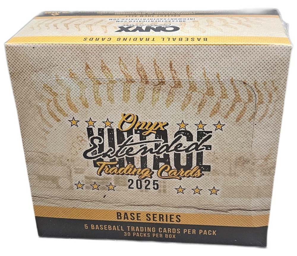League: Major League (MLB) Type: Sports Trading Card Season: 2025 Features: Rookie Language: English Year Manufactured: 2025 Number of Boxes: 1 Country of Origin: United States Configuration: Box Team: Various Player/Athlete: Various Sport: Baseball Set: 2025 Onyx Vintage Extended Baseball Manufacturer: Onyx