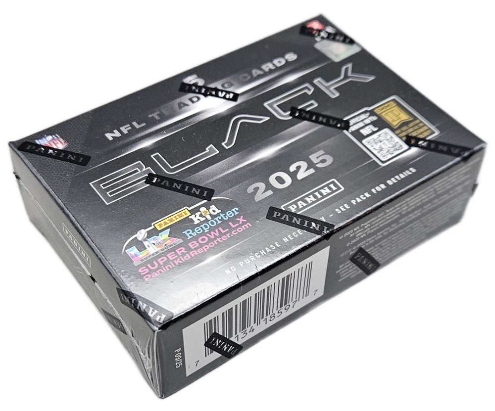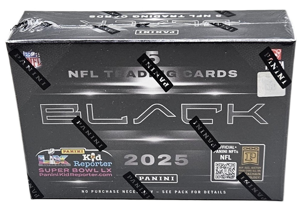 2025 Panini Black Football - Sealed Hobby Box 1 Packs Per Box - 5 Cards Per Pack 2 Autographs and 1 Memorabilia Card Per Box Absolute Football returns for the 2025 season equipped to impress with some of the most desirable autograph and autograph-memorabilia cards of the year! Absolute has incredible autograph cards from the top superstars in the league today as well as future greats from the 2025 NFL Draft Class! The product delivers a stacked checklist featuring the hottest rookies, the best veterans and the most iconic legends! Few products deliver the kind of case-chase hits that Absolute does with horizontal and vertical Kabooms! Look for the Hobby-exclusive Red Base Parallel! 1 Rookie Premiere Materials Autographs 2 Additional Autographs 2 Memorabilia Cards 1 Insert 2 Parallels 1 Rookie Card 6 Base Cards Absolute football delivers a stacked lineup, featuring the hottest rookies, the best veterans and the game’s most iconic legends. Autographs: Absolute has incredible autograph cards from the top superstars in the league today as well as future greats from the 2025 NFL Draft Class! Parallels: 2025 Absolute football is back with one of the most sought-after case hit Kabooms in Vertical, Horizontal and Super Bowl parallels!