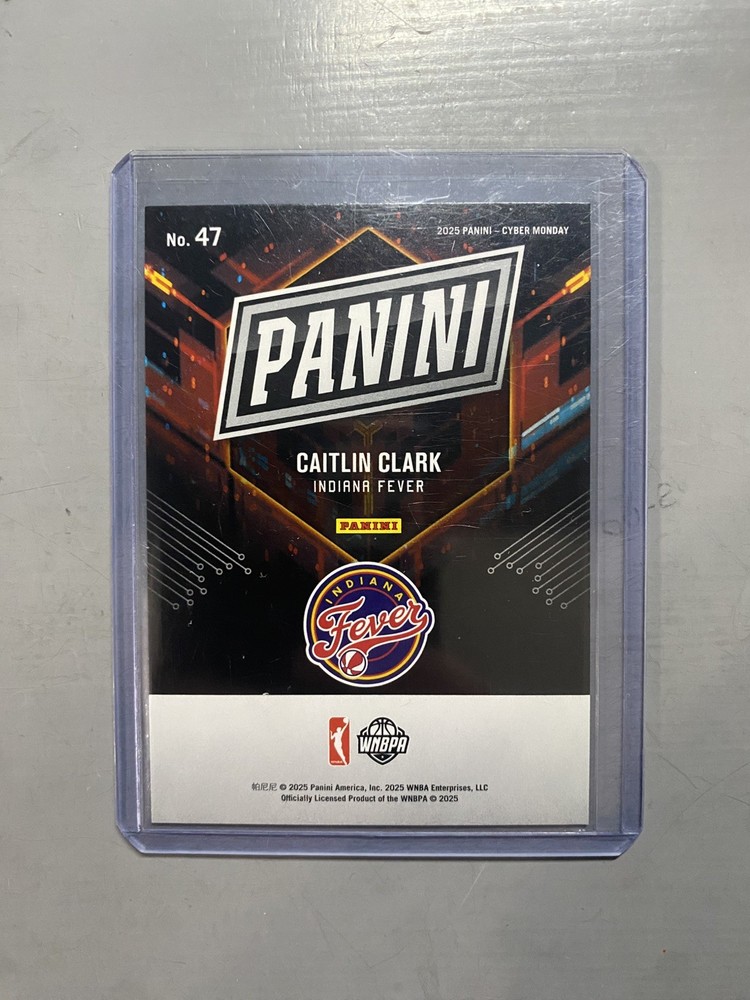 The product is a 2025 Panini Cyber Monday Basketball trading card featuring Caitlin Clark, with a limited edition run of only 199 cards. This highly collectible item is a "FEVER" pack fresh card, showcasing the talented basketball player in a sought-after set by Panini. With its unique design and limited availability, this card is a valuable addition to any sports trading card collection, especially for fans of Caitlin Clark or basketball memorabilia.