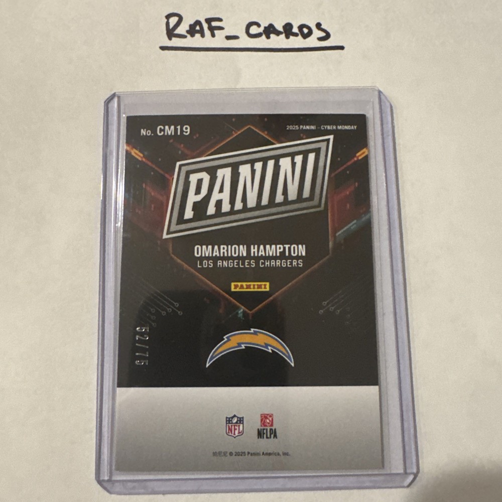 2025 Panini Cyber Monday Omarion Hampton RC /75 #CM19. Condition is Ungraded. Shipped with eBay Standard Envelope for eligible items up to $20.