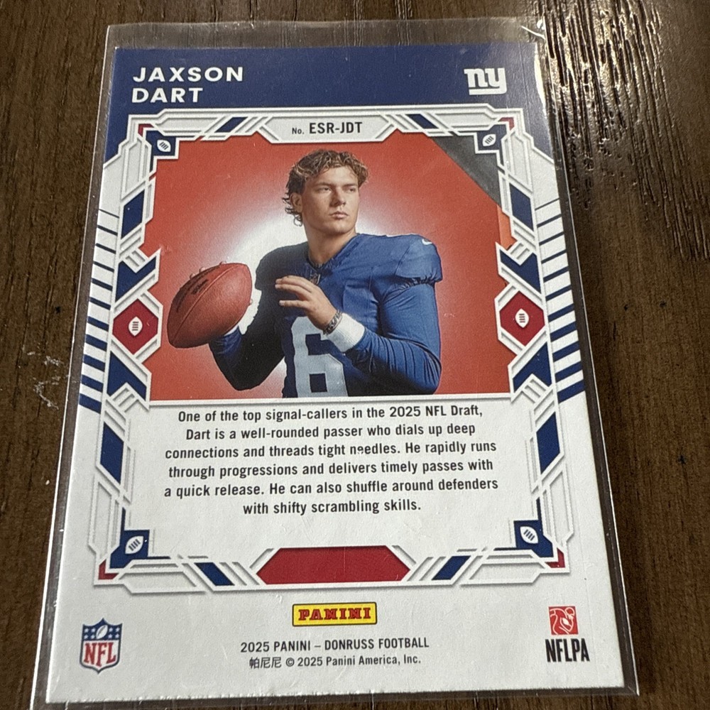 2025 Panini Donruss Elite Series Rookies #ESR-JDT Jaxson Dart RC Holo SP Giants. Condition is Ungraded. Shipped with USPS Ground Advantage.