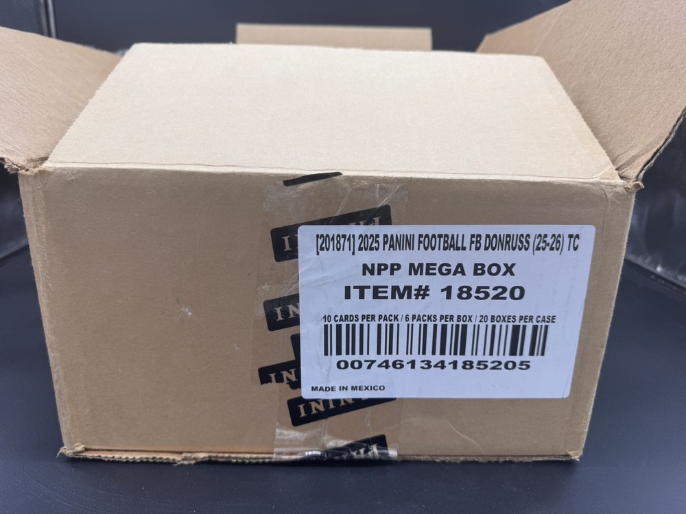 The 2025 Panini Donruss NFL Mega Box LOT OF 20 FULL OPENED CASE contains standard-sized trading cards featuring players from the National Football League (NFL). This set includes cards of notable athletes like Patrick Mahomes, with autographs in the form of labels or stickers. The cards are made of card stock and come in a box configuration, making them perfect for football fans looking to add to their collection. With features like Rookie, Parallel, and Chase cards, this set is a must-have for any NFL trading card enthusiast.