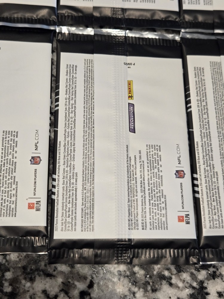 The 2025 Panini Revolution NFL Trading Cards 10 Pack contains a total of 40 cards that are factory sealed. Each pack is specifically focused on the National Football League (NFL) and includes cards from the 2025 Revolution set. As a manufacturer of sports trading cards, Panini ensures that each pack offers a variety of cards featuring players from the NFL season of 2025. This product is perfect for football fans and collectors looking to add to their collection of sports trading cards with a promise of authenticity and quality.