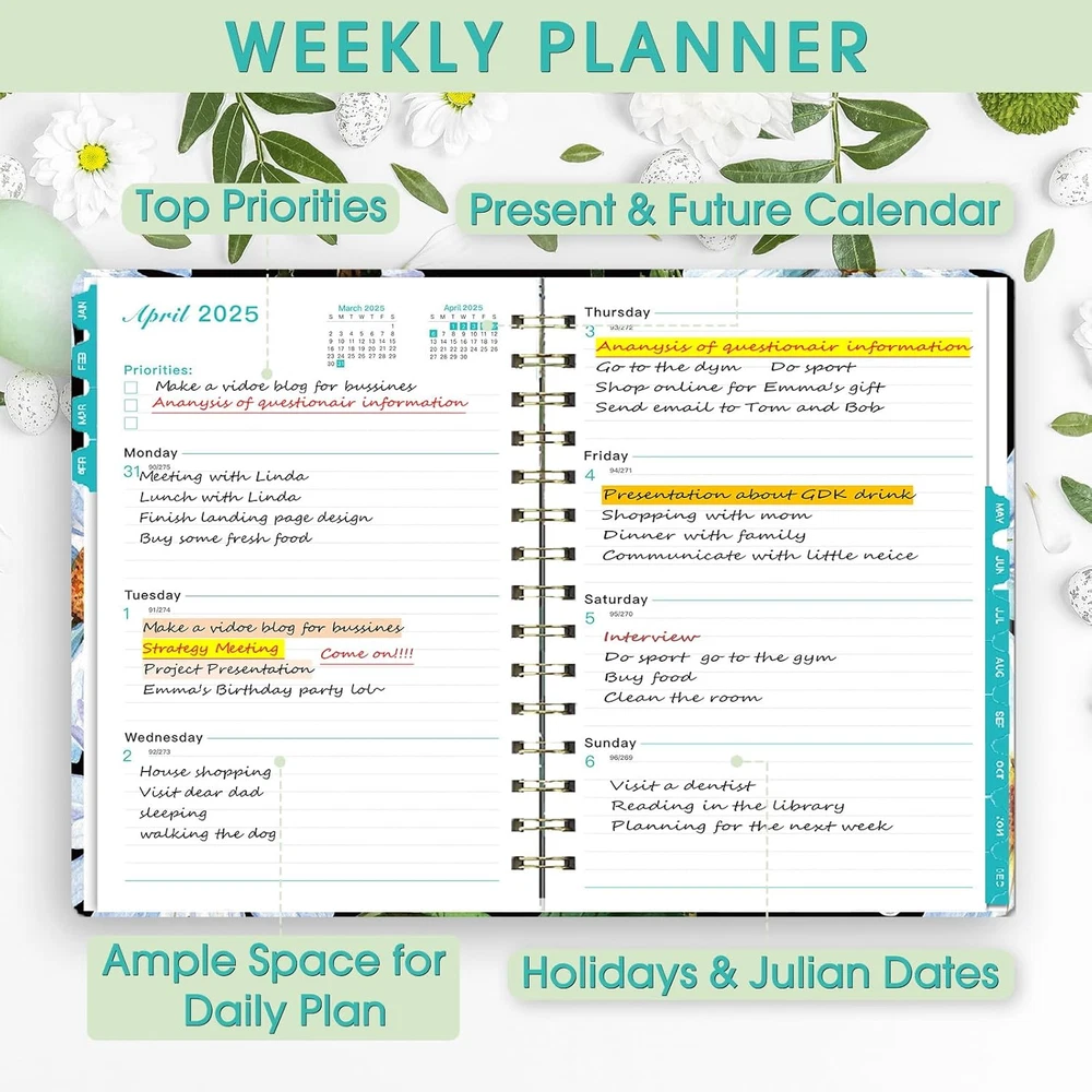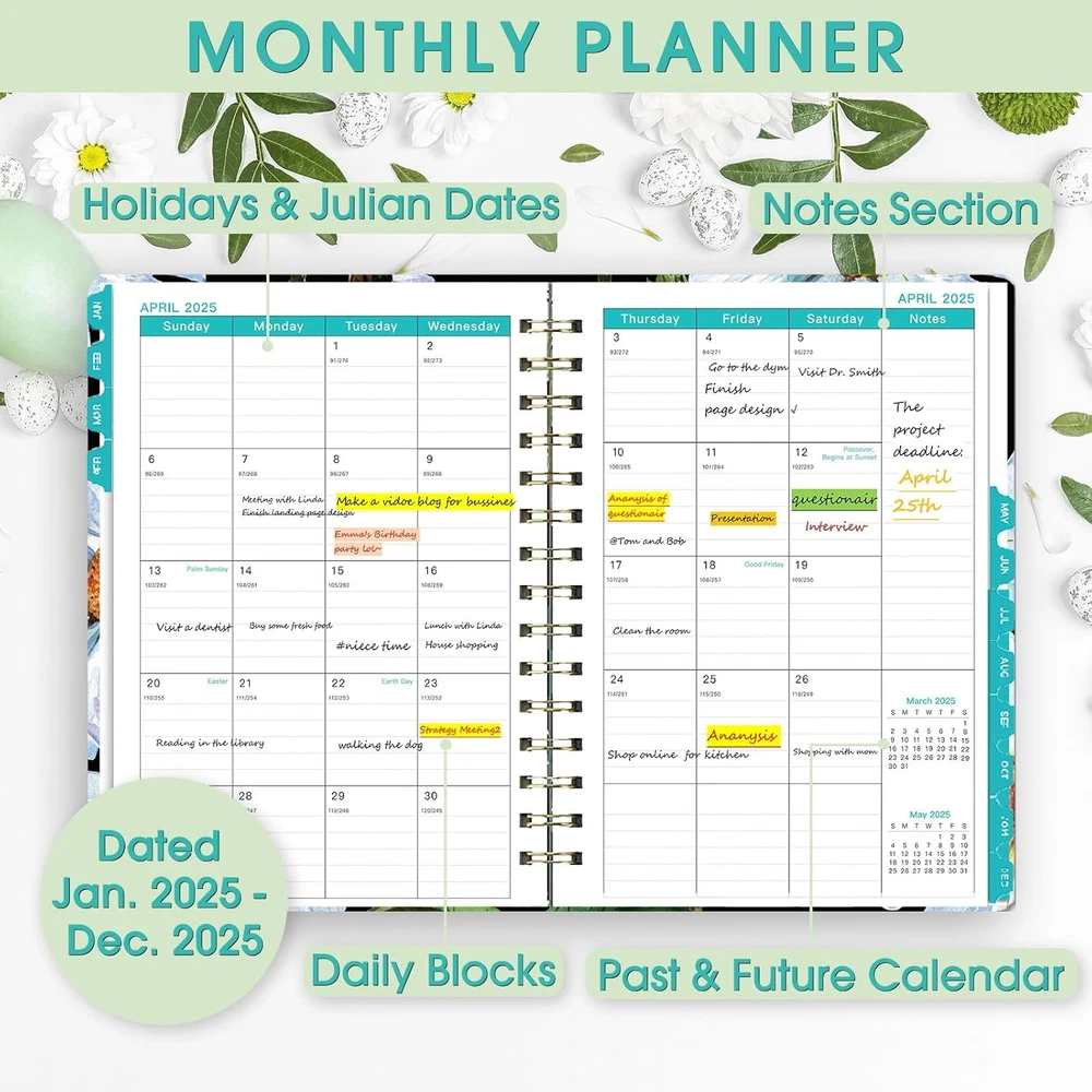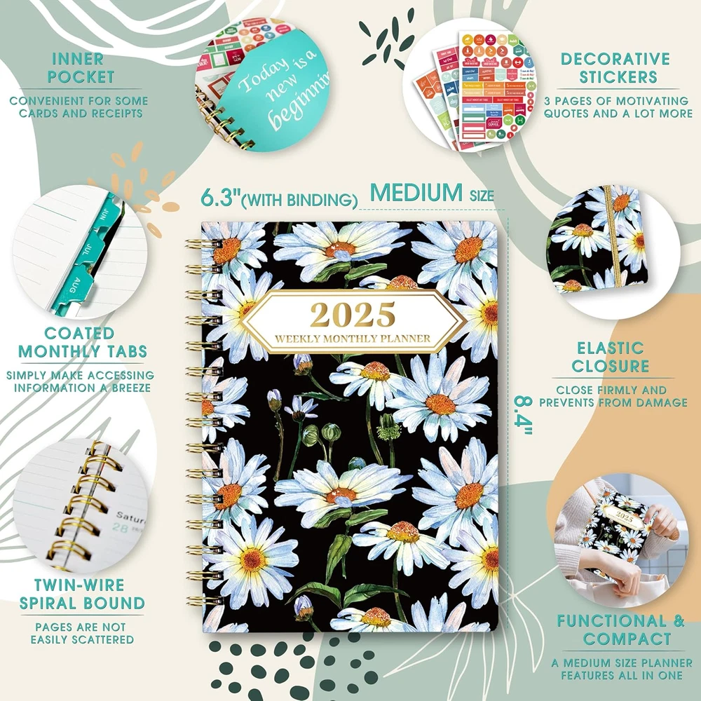 Store New Arrivals Add to Favorite View Feedback Contact Fast deliveries to the customer's home Quality customer service John Make the customers happy! 2025 Planner, 12-Month Daily Weekly Monthly Planner from JAN.2025 to DEC.2025, 8.4" X 6", Spiral Planner Notebook with Stickers, Elastic Closure, Inner Pocket Description 【 YMUMUDA 2025 PLANNER 】This daily weekly monthly planner 2025 hardcover (8.4"×6") features 12 months from JAN. 2025 to DEC. 2025 with weekly monthly planning pages, the planner offers other additional pages to help you well organized for the whole year and increase productivity. 【 MONTHLY PLANNING 】Each monthly pages with lined daily blocks lists major US holidays and Julian dates, the calendar planner 2025 also contains a notes section and past/previous calendar reference for your better past reviewing and future planning. 【WEEKLY PLANNING】Weekly view pages contain enough ruled space for your detailed daily planning, appointments, activities and so on. Major holidays listed, elapsed and remaining days noted. Priorities section is designed to focus your energy on your most important goals. 【PROFESSIONAL DESIGN 】Planner Front Cover | Yearly Overview | Contacts | Quick Reference Information | Monthly Inner Tabs | Holidays | Weekly and Monthly Pages | Twin-Wire Binding | Inner Pocket | Elastic Closure |3 Pages of Stickers. 【WORRY-FREE GUARANTEE】Focus on providing planner with excellent production and professional design. We provide 30-day quality assurance. If you're having ANY quality issues about your weekly monthly planner 2025, please contact us via amazon at first time. Product Description 1 WEEKLY PLANNING 2 MONTHLY PLANNING 3 ADDITIONAL PAGES 4 ADDITIONAL PAGES 5 REMEMBER TO|DO We cordially invite you to explore further by clicking to view the series below. Add to Cart Add to Cart Add to Cart Add to Cart Add to Cart Add to Cart Customer Reviews 4.7 out of 5 stars 466 4.4 out of 5 stars 135 4.7 out of 5 stars 157 4.6 out of 5 stars 238 4.3 out of 5 stars 111 4.6 out of 5 stars 86 4.5 out of 5 stars 74 Price $9.99 $ 9 . 99 $7.95 $ 7 . 95 $7.99 $ 7 . 99 $7.95 $ 7 . 95 $8.95 $ 8 . 95 $16.95 $ 16 . 95 — Year JAN. 2025 - DEC. 2025 JAN. 2025 - DEC. 2025 JAN. 2025 - DEC. 2025 Oct. 2024 - Dec. 2025 JAN. 2025 - DEC. 2025 JAN. 2025 - DEC. 2025 JAN. 2025 - DEC. 2026 Size 8.4×6" 8.4×6" 8.25×5.85" 8×6" 4×6" 8.5×11" 8.5×11" Cover Material Paper Polypropylene Leather Paper Paper Paper Polypropylene Spiral Binding ✔ ✔ ✘ ✔ ✘ ✔ ✔ Inner Pocket ✔ ✔ ✘ ✔ ✔ ✔ ✔ Sheet Size A5 Inches Material Paper Format Notebook Paper Size A5 Inches Item Dimensions L x W x Thickness 8.4"L x 6"W x 0.75"Th Binding Spiral-bound Cover Material Cardboard Calendar Type Weekly Monthly Material Type Paper Color White Daisy Model Year 2025 Recommended Uses For Product Personal planning and productivity Year 2025 Ruling Type Weekly Montly Ruled Additional Features Elastic Closure Target Audience Adult, Student Pages 144 Pages Item Dimensions L x W 8.4"L x 6"W ABOUT US We offer the best prices around on high quality products. Our E-store includes media such as books, movies, music and games while offering electronics, toys, sporting apparel, clothing, tools, general home, garden items and more. SHIPPING We are always working hard to ensure your package arrives as soon as possible. Please understand that some factors like weather, high postal traffic, and the performance of shipping companies are outside of our control. We offer free shipping to the lower 48 states and ship within 2 business days of payment, usually sooner. We do not accept P.O. Boxes. Please provide a physical address. For shipping outside of the continental USA, we only use eBay's Global Shipping Program. The item is shipped to KY and then sent to the rest of the world. International customers are responsible for all duties and taxes. Continue to 'check out' to calculate costs for shipping the item to your country. Messages regarding eBay's Global Shipping Program MUST be directed at eBay EXCLUSIVELY. RETURNS We offer a 30-Day Return Policy on items in which you are not completely satisfied with. You have the option of a full-refund or an exchange of the item. No returns are available on items shipped outside of the USA PAYMENT We accept PayPal. CONTACT US This page content is yet to come Please ad us to your favorite seller and visit again later Thank You CUSTOMER SATISFACTION We try our very best to make sure every customer is completely satisfied. If there's a problem, message us! We're happy to help. WE ACCEPT