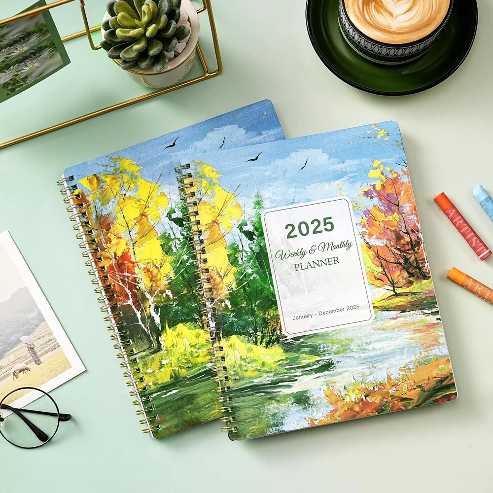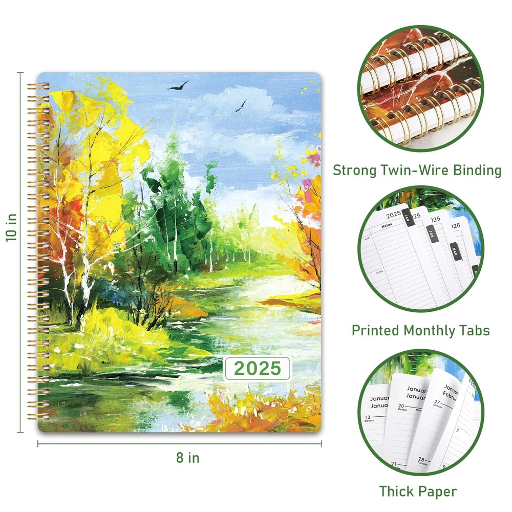 ☘️ Planner 2025 - This 2025 calendar planner is designed to span the entire year of 2025, from January to December 2025. With dimensions of 8" x 10", it's perfectly portable, making it an ideal choice for students to toss in their backpack or professionals for their daily commute. ☘️ Monthly Planning Reimagined - Navigate through the months with our clear monthly planning pages. Each page offers a broad view, with each day's space measuring 1.65" x 1.69", perfect for jotting down appointments and tasks. A reference calendar for the past, present, and future months aids in extended planning. Plus, a dedicated note section and marked holidays keep your important dates and creative thoughts in check. ☘️ Weekly Planning Reinvented - Dive into the weekly planning pages, designed with ample lined space to list your tasks from Monday to Sunday. Complete a task? Tick it off with satisfaction. These pages provide a clear and concise weekly layout, ensuring you never lose sight of your daily agenda. ☘️ Elegant Aesthetics for the 2025 Planner - Crafted with a touch of sophistication, the 2025 monthly planner boasts a flexible cover depicting a serene golden autumn scene, offering a pleasant experience. Durable twin-wire binding and rounded corners enhance its sturdiness and portability, making it a reliable tool for your daily planning needs. ☘️ Ideal for Students & Office Workers – Students will find this planner 2025 a great tool for keeping track of their academic calendars, assignments, and exam schedules. Office workers can use it for meeting minutes, project timelines, and personal goal setting. It can also be given as a gift to friends, classmates, and friends who like to write by hand.