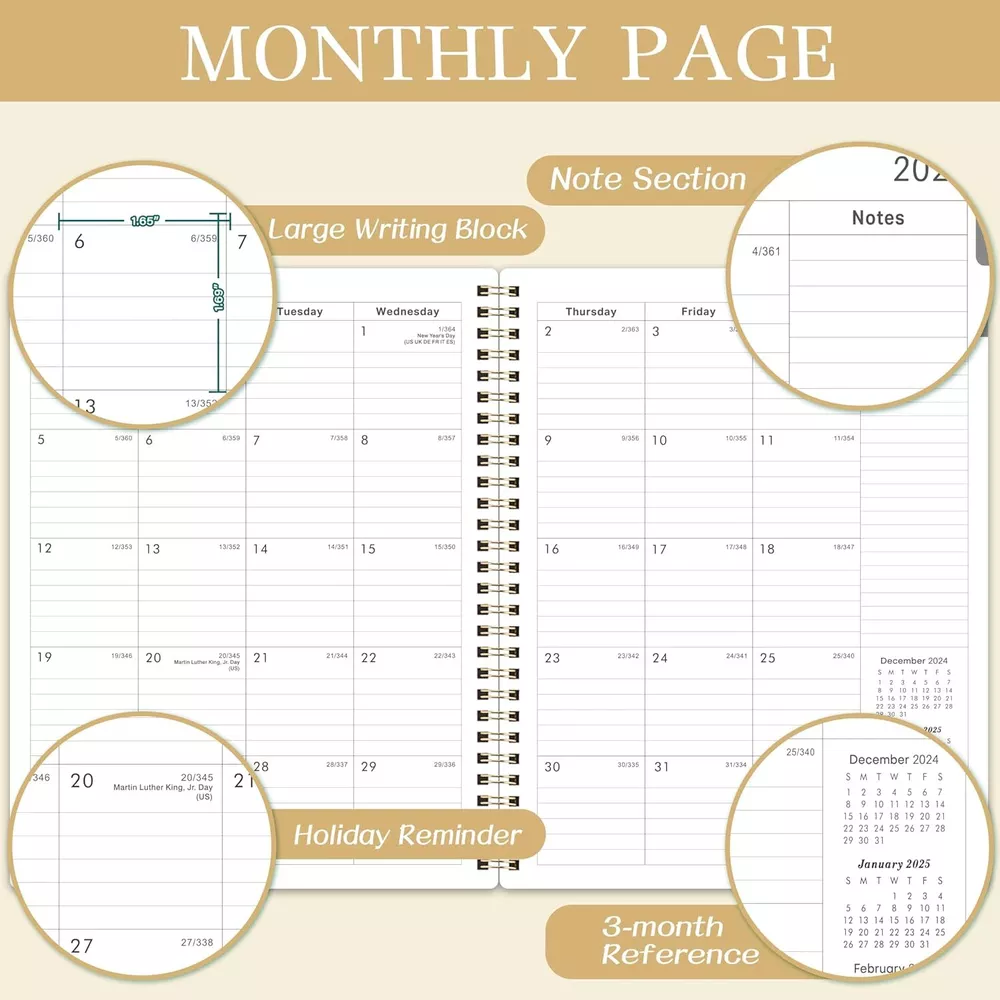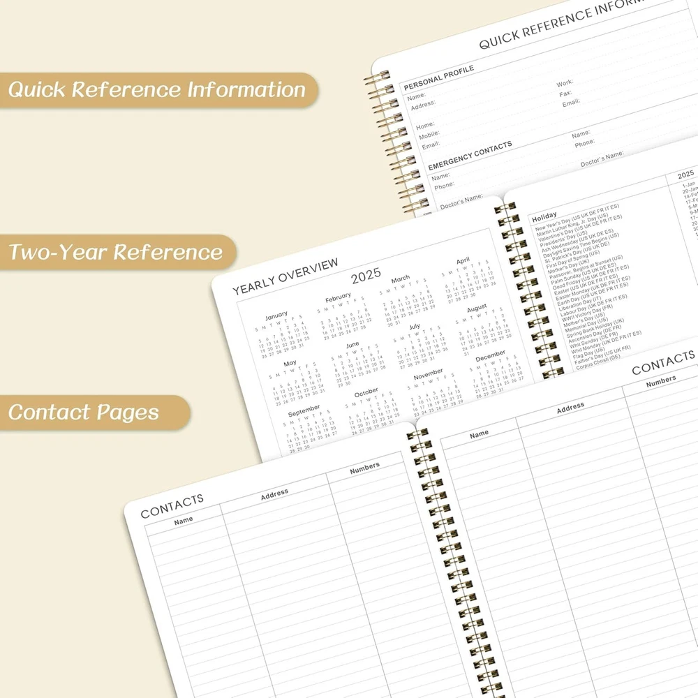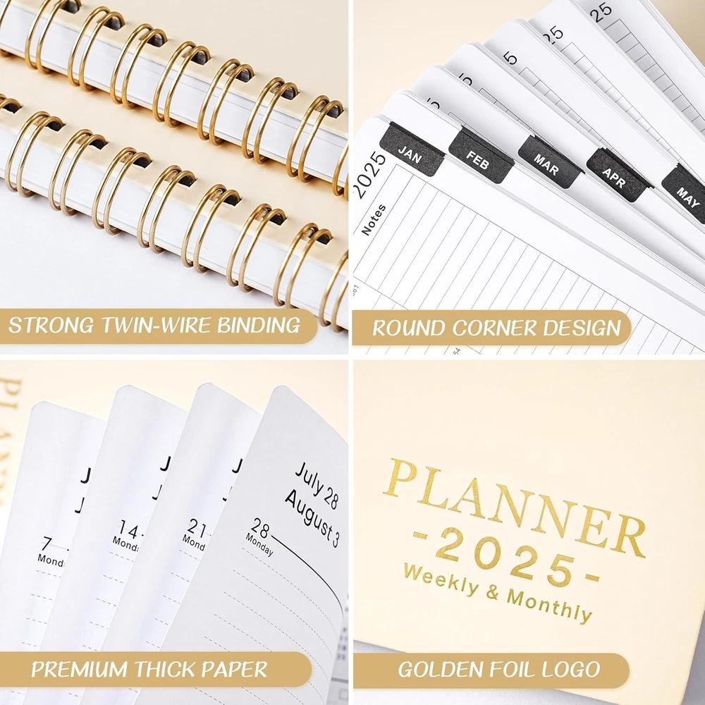 2025 Planner - 2025, JAN. - DEC. 8" x 10" 2025 Gold Product Details Manufacturer: Attitill Brand: Attitill Item Weight: 11.3 ounces Package Dimensions: 9.76 x 7.68 x 0.39 inches Item model number: HCS810MSDZYA25 Color: Gold Cover Material: Paper Material Type: Paper Sheet Size: 8x10 Manufacturer Part Number: HCS810MSDZYA25 Brand: Attitill Color: Gold Cover Material: Paper Year: 2025 Format: Organizer, Notebook Calendar Type: Weekly and Monthly Target Audience: Teacher, Adult, Student Sheet Size: 8x10 Material: Paper Item Weight: 0.32 Kilograms 2025 PLANNER - The 2025 planner weekly and monthly includes 2025 & 2026 yearly overview and 2025-2027 holidays overview. The planner 2025 is also a multifunctional planner, which uniquely adds extra function pages. WEEKLY PLANNER - The weekly planner pages of the 2025 planner contain 53 weeks, for more detailed daily goal planning. The 2025 planner weekly and monthly has plenty of space for daily planner writing. Each daily planning place of the planner spread across two sides to make your planning more flexible. MONTHLY PLANNER - The monthly planner pages of the 2025 calendar monthly planner contain 12 months. And the planner 2025 can help you comprehensively follow up the progress of the plan from the perspective of the whole month. This 2025 planner has enough writing space to make plans. There are also three months calendar reference in the planner, which can be used to check your date in your planning. 2025 PLANNER FOR ORGANIZATION- The 2025 planner weekly and monthly is absolutely the best planner for goal planning and efficient completion, suitable for office, study, life schedule, etc. The 2025 planner is not only good for your own use, but also good for your family, friends and loved ones. FUNCTIONAL DESIGNS - Well Designed Cover | Twin-Wire Binding | 2 Yearly Overview | 3 Years Holiday Overview | 2 Contacts Pages | Quick Reference Information | Holidays Reminder | Julian Dates | Notes Section | Monthly Tabs | 2025 Planner