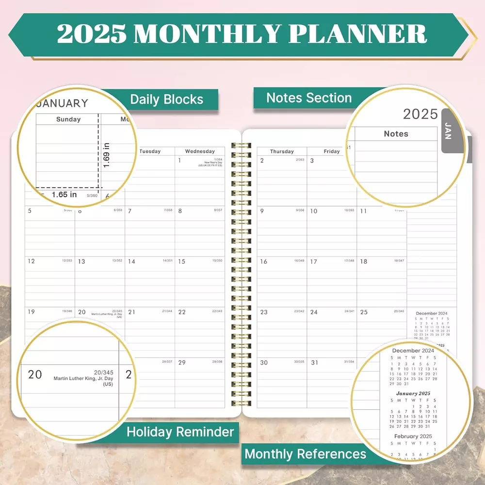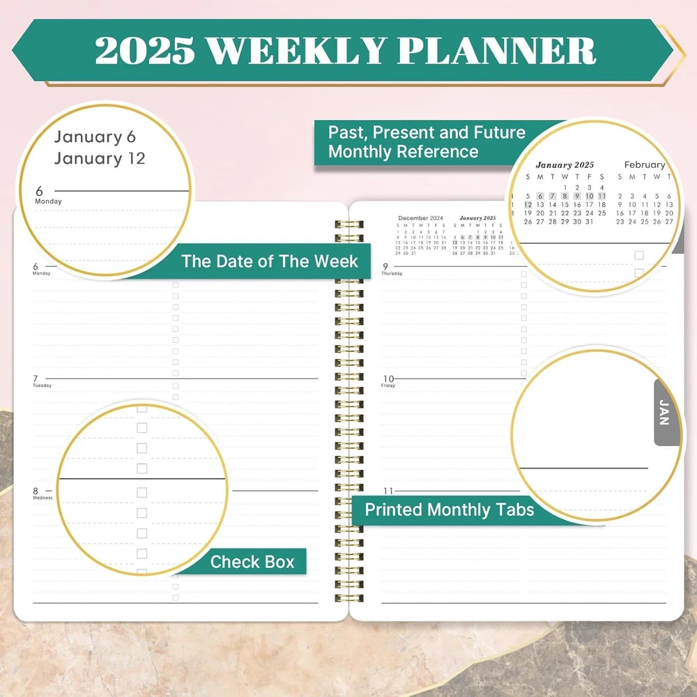 2025 Planner - 2025, Jan. 2025 - Dec. 8'' x x 10'', Pink Product Details Manufacturer: Frasukis Brand: Frasukis Item Weight: 11.3 ounces Package Dimensions: 9.69 x 7.72 x 0.55 inches Item model number: FK810FLRDZYA01 Color: Pink Cover Material: Paper Material Type: Paper Size: 8'' x 10'' Ruling: lined Sheet Size: 8 ×10 Inches Manufacturer Part Number: FK810FLRDZYA01 Brand: Frasukis Color: Pink Cover Material: Paper Year: 2025 Format: Notebook, Organizer Calendar Type: Weekly and Monthly Target Audience: Student Sheet Size: 8 ×10 Inches Material: Paper Item Weight: 0.32 Kilograms 【PLANNER 2025 WEEKLY AND MONTHLY 】The 2025 planner includes 2025 and 2026 calendar overview and 2025-2027 holidays overview. The 2025 planner is also a multifunctional planner, which uniquely adds extra function pages. The personal information page and 2 contact pages of the planner 2025, make you not only plan in a scientific and efficient way, but also record and collate other important personal information, so that you can complete your work more effectively. 【2025 MONTHLY PLANNER】The monthly planner pages of the 2025 planner contain 12 months. And the weekly and monthly planner 2025 can help you comprehensively follow up the progress of the plan from the perspective of the whole month. This 2025 calendar planner has enough writing space to make plans. There are also three months calendar reference in the weekly and monthly planner 2025, which can be used to check your date in your planning, as well as check the progress of the plan. 【2025 WEEKLY PLANNER】The weekly planner pages of the 2025 calendar planner contain 53 weeks, for more detailed daily goal planning. The weekly planner page has plenty of space for daily planner writing. Each daily planning place of the 2025 planner spread across two sides to make your planning more flexible. The planner 2025 also includes the three-month calendar reference, which is convenient for you to refer to the next and last month. 【2025 PLANNER】The 2025 planner weekly and monthly, is absolutely the best planner for goal planning and efficient completion, suitable for office, study, life schedule, etc. The 2025 planner is not only good for your own use, but also good for your family, friends and loved ones. Everything well-done begins with your perfect planning. 【FUNCTIONAL DESIGNS】Well Designed Cover | Twin-Wire Binding | 2 Yearly Overview | 3 Years Holiday Overview | 2 Contacts Pages | Quick Reference Information | Holidays Reminder | Julian Dates | Notes Section | Monthly Tabs | 2025 Planner | 2025 Planner Weekly and Monthly