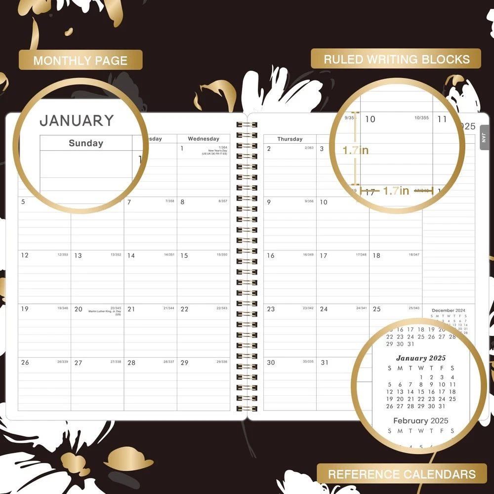 2025 Planner - 2025 Planner Weekly and Monthly from Jan. 2025- Dec. 2025, Calendar Planner 2025 with To Do List, Floral Cover Planner 2025 Planner- Weekly monthly planner 2025 which covers 12 months from Jan 2025 -Dec 2025. Calendar planner features full monthly view pages for each month. Separate pages with full weekly view for more detailed planning. Monthly Planning - Each month of this 2025 planner covers 2 full pages, contain present, current and next months reference for long-term planning, and a notes section for important projects; Major holidays listed, elapsed and remaining days noted. Premium Thick Paper - The weekly monthly planner 2025 printed with high quality premium white paper, which effectively reduces ink through, include monthly tabs makes you get a simple way to make accessing information a breeze. Sturdy&Stylish - High quality floral cover for the planner, easy to curl and store, add a touch of modern professionalism chic color to your daily routine. Sturdy gold Twin-wire binding enables to easily turning pages. Feature Organization - Includes a convenient list of holidays (2025, 2026 & 2027), 2 Yearly Overview (2025 - 2026) , contacts pages and quick reference information; rounded corners design which can anti-cutting hand. Shipping from the USA All of our products are shipped from the USA, ensuring quick delivery to your destination. Payment We offer the following payment methods: PayPal, credit card, bank transfer, and eBay's secure payment system. Free Shipping & Free Returns Shipping within the USA is FREE. Additionally, any return is absolutely free for you. Risk-Free Purchase You have the option to return an item within 30 days without any justification. We cover the return shipping costs! Fast Shipping We ship immediately upon receipt of payment. Generally, the package is delivered within 2-3 days in the USA. If it takes longer, we will contact you. Quality and Costs Made in Europe, USA, China No customs fees or additional charges Total satisfaction guarantee Invoice with declared VAT available upon request in .pdf format Feedback Your feedback is very important to us. After you pay for your purchase, you will automatically receive positive feedback from us.
