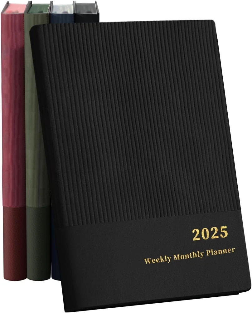 2025 Planner, Weekly Monthly Planner 2025, 8.25"×5.85", 12 Months, Black Product Details Brand: Ymumuda Color: Black Cover Material: Faux Leather Year: 2025 Format: Notebook Calendar Type: Weekly Monthly Planner Target Audience: Kid, Adult, Student, Officer Sheet Size: 5.85 X 8.25 inches Material: Paper Pages: 144 Pages 【 YMUMUDA 2025 PLANNER 】This planner 2025 hardcover (8.25"×5.85") features 12 months from JAN. 2025 to DEC. 2025 with weekly monthly planning pages, the planner offers other additional pages to help you well organized for the academic year and increase productivity. 【 MONTHLY PLANNING 】Each monthly pages with lined daily blocks lists major US holidays and Julian dates, the calendar planner 2025 also contains a notes section and past/previous calendar reference for your better past reviewing and future planning. 【WEEKLY PLANNING】Weekly view pages contain enough ruled space for your detailed daily planning, appointments, activities and so on. Major Holidays Listed, elapsed and remaining days noted. Priorities section is designed to focus your energy on your most important goals. 【PROFESSIONAL DESIGN 】Planner Special Soft Cover | Safty Round Corner Design | Professional Tight Binding Metal | Ribbon Bookmark | Yearly Overview | Contacts | Quick Reference Information | Monthly Printed Tabs | Holidays | Weekly and Monthly Pages . 5 colors(Black/ Blue/ Brown/ Red/ Green) available for you to choose.
