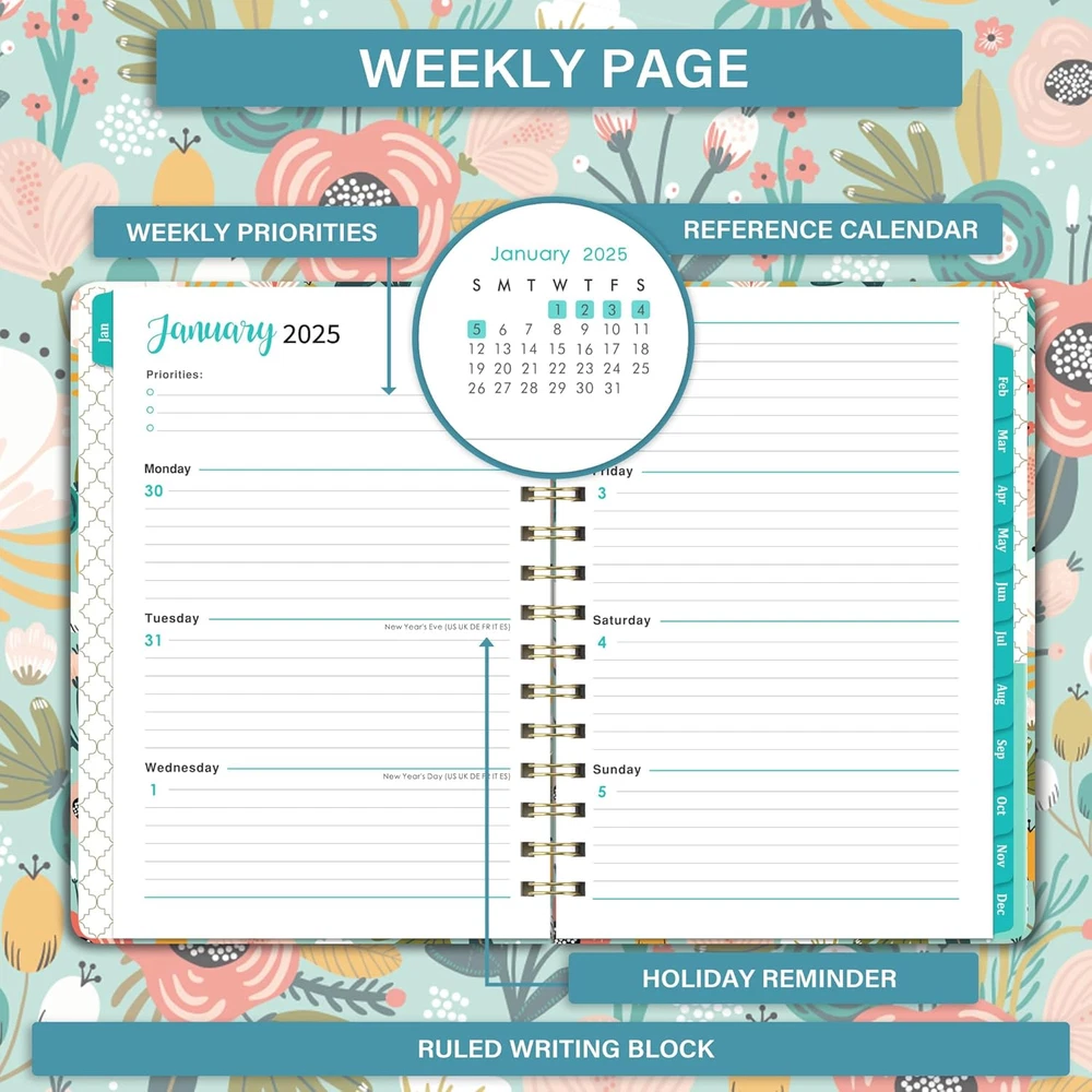 Store New Arrivals Add to Favorite View Feedback Contact Fast deliveries to the customer's home Quality customer service John Make the customers happy! 2025 Planner - Weekly Monthly Planner 2025 Form Jan. 2025 to Dec. 2025, Calendar Planner with Inner Pocket, Premium Paper, 6.4‘’ X 8.3'' Description 🌿2025 Planner - Calendar Planner 2025 with 12 months from January 2025 to December 2025, 6.4" x 8.5" Weekly & Monthly Planner with Tabs that help you plan your day easier. 🌿Yearly Overview - 2025 planner with monthly overview of 2025 and 2026, also features with quick reference information page, contact page and holidays page. 🌿Monthly Planning – Each monthly page contains a monthly overview with blank daily blocks in 1.25 x 1.1 in, previous and next month reference calendar for long-term planning, and a note section for priorities. 🌿Functional Design - Strong twin-wire binding for the 2025 planner lay-flat 360°+ 12 monthly tabs for quick reference +The back inside pocket for holding some cards + Elastic closure for keeping planner closed. 🌿Featured Organization - Hardcover design + Water resistant cover + Quick Reference Information + Yearly Overview of 2025 & 2026 + Holidays of 2025-2027 Product Description 2025 Planner - Weekly Monthly Planner 2025/Calendar Planner 2025 ( Jan 2025-Dec 2025 ) This weekly monthly planner 2025 covers 12 months from January 2025 - December 2025, which features with beautiful purple flowers pattern cover for a better visual feast. Calendar planner with golden durable wire-binding allowing lay-flat orientation to create a lasting planner. Four module pages on the front of the 2025 planner are quick reference information, 2 Yearly Overview of 2025-2026, 3 yearly holidays overview of 2025-2027 and 2 contact pages. What To Expect- Planner 2025/2025 Weekly Monthly Planner 12 Monthly Tabs - For quick reference to the correct month. Two-Month Calendar Reminder - To remind you the past, and future month. Highlighted Holiday - To remind you the important date. Inspired Quote - Inspirational words make your life more powerful Inner Pocket - The back pocket can hold your favorite pictures, lists, cards, stamps and so on What To Expect- Planner 2025/2025 Weekly Monthly Planner 12 Monthly Tabs - For quick reference to the correct month. Two-Month Calendar Reminder - To remind you the past, and future month. Highlighted Holiday - To remind you the important date. Inspired Quote - Inspirational words make your life more powerful Inner Pocket - The back pocket can hold your favorite pictures, lists, cards, stamps and so on What To Expect- Planner 2025/2025 Weekly Monthly Planner 12 Monthly Tabs - For quick reference to the correct month. Two-Month Calendar Reminder - To remind you the past, and future month. Highlighted Holiday - To remind you the important date. Inspired Quote - Inspirational words make your life more powerful Inner Pocket - The back pocket can hold your favorite pictures, lists, cards, stamps and so on What To Expect- Planner 2025/2025 Weekly Monthly Planner 12 Monthly Tabs - For quick reference to the correct month. Two-Month Calendar Reminder - To remind you the past, and future month. Highlighted Holiday - To remind you the important date. Inspired Quote - Inspirational words make your life more powerful Inner Pocket - The back pocket can hold your favorite pictures, lists, cards, stamps and so on 2025 PLANNER 2025 PLANNER 2025 PLANNER 2025 PLANNER Details of 2025 Weekly Monthly Planner/Calendar Planner 2025/Weekly Planner/Monthly Planner STRONG GOLD TWIN-WIRE BINDING Sturdy gold wire-binding offers lie-flat ease and convenience. PREMIUM THICK PAPER High-quality paper features superior ink resistance. Smoother and thicker than normal. Inner Pocket The back pocket can hold your favorite pictures, lists, cards, stamps and so on. 12 MONTHLY TABS 12 monthly tabs makes you get a simple way to make accessing information a breeze. 2025 Planner for you!2025 Calendar Planner with Beautiful Pattern Is Easy On The Eyes! Sheet Size 6.4 x 8.3 Inches Calendar Type Monthly/Weekly/Gregorian Format Lay Flat Paper Size 6.4 x 8.3 Inches Color Green Binding Unknown Binding Cover Material Paper Material Paper Material Type Paper Additional Features Elastic Closure Target Audience Adult Year 2021 Recommended Uses For Product Academic, Personal, and Professional Use Model Year 2021 ABOUT US We offer the best prices around on high quality products. Our E-store includes media such as books, movies, music and games while offering electronics, toys, sporting apparel, clothing, tools, general home, garden items and more. SHIPPING We are always working hard to ensure your package arrives as soon as possible. Please understand that some factors like weather, high postal traffic, and the performance of shipping companies are outside of our control. We offer free shipping to the lower 48 states and ship within 2 business days of payment, usually sooner. We do not accept P.O. Boxes. Please provide a physical address. For shipping outside of the continental USA, we only use eBay's Global Shipping Program. The item is shipped to KY and then sent to the rest of the world. International customers are responsible for all duties and taxes. Continue to 'check out' to calculate costs for shipping the item to your country. Messages regarding eBay's Global Shipping Program MUST be directed at eBay EXCLUSIVELY. RETURNS We offer a 30-Day Return Policy on items in which you are not completely satisfied with. You have the option of a full-refund or an exchange of the item. No returns are available on items shipped outside of the USA PAYMENT We accept PayPal. CONTACT US This page content is yet to come Please ad us to your favorite seller and visit again later Thank You CUSTOMER SATISFACTION We try our very best to make sure every customer is completely satisfied. If there's a problem, message us! We're happy to help. WE ACCEPT