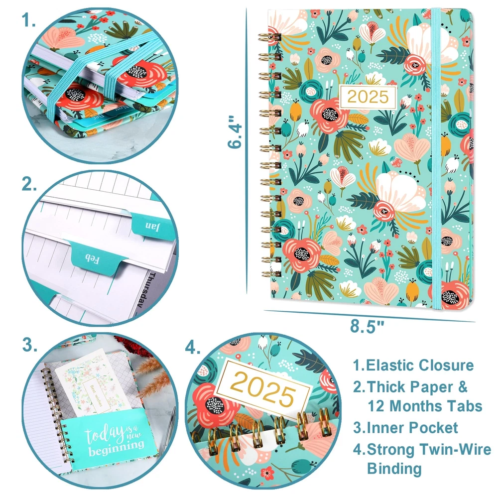 🌿2025 Planner - Calendar Planner 2025 with 12 months from January 2025 to December 2025, 6.4" x 8.5" Weekly & Monthly Planner with Tabs that help you plan your day easier. 🌿Yearly Overview - 2025 planner with monthly overview of 2025 and 2026, also features with quick reference information page, contact page and holidays page. 🌿Monthly Planning – Each monthly page contains a monthly overview with blank daily blocks in 1.25 x 1.1 in, previous and next month reference calendar for long-term planning, and a note section for priorities. 🌿Functional Design - Strong twin-wire binding for the 2025 planner lay-flat 360°+ 12 monthly tabs for quick reference +The back inside pocket for holding some cards + Elastic closure for keeping planner closed. 🌿Featured Organization - Hardcover design + Water resistant cover + Quick Reference Information + Yearly Overview of 2025 & 2026 + Holidays of 2025-2027