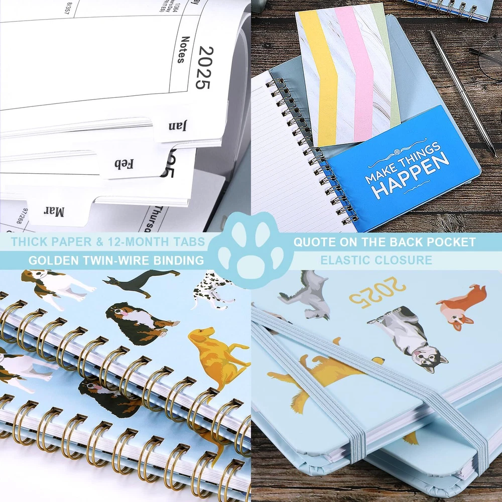 2025 Planner - Weekly & Monthly Planner 2025 with Tabs, Jan. 2025 - Dec. 2025, 6.5" x 8.5", Hardcover with Back Pocket + Thick Paper + Banded, Twin-Wire Binding - Cute Dogs ๐พ JANUARY 2025 - DECEMBER 2025 - Featuring 12 months of weekly and monthly pages and marked holidays. With weekly and monthly sections for easy planning and scheduling. ๐พ CONTENT DESIGN - 12 months of monthly pages with past and future monthly referencing + 12 months of ample lined weekly pages + 2025-2026 calendar overview + 2025-2026 holiday pages + 2 contact pages. ๐พ DETAILS - Metal lay-flat twin-wire binding allows for 360ยฐ folding over + 12 monthly tabs for quick checking + Quote on the back inside pocket which can hold some cards + Elastic closure band to keep planner closed. ๐พ QUALITY - Thicker paper than normal 2025 planner in the market to reduce ink leakage, erase fraying and shade issues. ๐พ SUPERIOR SERVICE - We will do our best to make you happy if you have any quality problems. Give us a chance and let us show you a great 2025 planner experience! ๐พ JANUARY 2025 - DECEMBER 2025 - Featuring 12 months of weekly and monthly pages and marked holidays. With weekly and monthly sections for easy planning and scheduling. ๐พ CONTENT DESIGN - 12 months of monthly pages with past and future monthly referencing + 12 months of ample lined weekly pages + 2025-2026 calendar overview + 2025-2026 holiday pages + 2 contact pages. ๐พ DETAILS - Metal lay-flat twin-wire binding allows for 360ยฐ folding over + 12 monthly tabs for quick checking + Quote on the back inside pocket which can hold some cards + Elastic closure band to keep planner closed. ๐พ QUALITY - Thicker paper than normal 2025 planner in the market to reduce ink leakage, erase fraying and shade issues. ๐พ SUPERIOR SERVICE - We will do our best to make you happy if you have any quality problems. Give us a chance and let us show you a great 2025 planner experience! Shipping from the USA All of our products are shipped from the USA, ensuring quick delivery to your destination. Payment We offer the following payment methods: PayPal, credit card, bank transfer, and eBay's secure payment system. Free Shipping & Free Returns Shipping within the USA is FREE. Additionally, any return is absolutely free for you. Risk-Free Purchase You have the option to return an item within 30 days without any justification. We cover the return shipping costs! Fast Shipping We ship immediately upon receipt of payment. Generally, the package is delivered within 2-3 days in the USA. If it takes longer, we will contact you. Quality and Costs Made in Europe, USA, China No customs fees or additional charges Total satisfaction guarantee Invoice with declared VAT available upon request in .pdf format Feedback Your feedback is very important to us. After you pay for your purchase, you will automatically receive positive feedback from us.