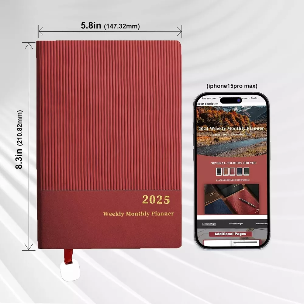 Free eBay listing template designed by dewiso.com YMUMUDA 2025 Planner – Stay Organized and Productive All Year Features: 1. Comprehensive Coverage: The hardcover planner (8.25" × 5.85") spans 12 months from January 2025 to December 2025 , offering both weekly and monthly planning pages to help you stay on track and organized throughout the year. 2. Detailed Monthly Planning: Lined daily blocks for each day make note-taking and scheduling easy. Includes major U.S. holidays and Julian dates for added convenience. Notes section and past/future month references on each monthly page facilitate review and future planning. 3. Practical Weekly Planning: Ample ruled space for appointments, activities, and daily plans. Major holidays listed alongside the elapsed and remaining days of the year . A dedicated priorities section to help you focus on your most important goals. 4. Professional Design: Features a soft-touch cover , safety round corners , tight metal binding , and a ribbon bookmark for a polished and durable design. Includes yearly overview , contact pages , quick reference information , and printed monthly tabs for seamless navigation. Available in 5 colors (Black, Blue, Brown, Red, Green) to suit your style. 5. Worry-Free Guarantee: Backed by a 30-day quality assurance , ensuring your satisfaction. If you experience any issues, YMUMUDA offers prompt customer service via Amazon. Contact us We are readily available to assist you with any inquiries, comments, or product requests via eBay messages. Our team is committed to responding within 24 hours and providing the utmost support. We strongly encourage our valued customers to reach out to us for any questions or concerns, ensuring your complete satisfaction with your purchase. Payment Shop with confidence on eBay knowing that your payment is secure. We utilize advanced security measures to protect your personal and financial information. Rest assured that your transaction is encrypted and handled with utmost confidentiality. For any concerns, our dedicated customer support team is available to assist you promptly. Your security is our priority. Shipping At eBay, we prioritize the secure shipping of your orders. Our trusted shipping partners ensure the safe and timely delivery of your purchases. Rest assured that your package is handled with care and tracked every step of the way. Should you have any questions or concerns, our customer support team is here to assist you promptly. Shop confidently knowing your shipping is in good hands. Disclaimer We prioritize customer security and offer a hassle-free return process. Our policy ensures your satisfaction and a secure return experience. Review our guidelines on the product listing or contact us for assistance. We promptly address concerns, ensuring your confidence in shopping with us. Your satisfaction is our commitment.
