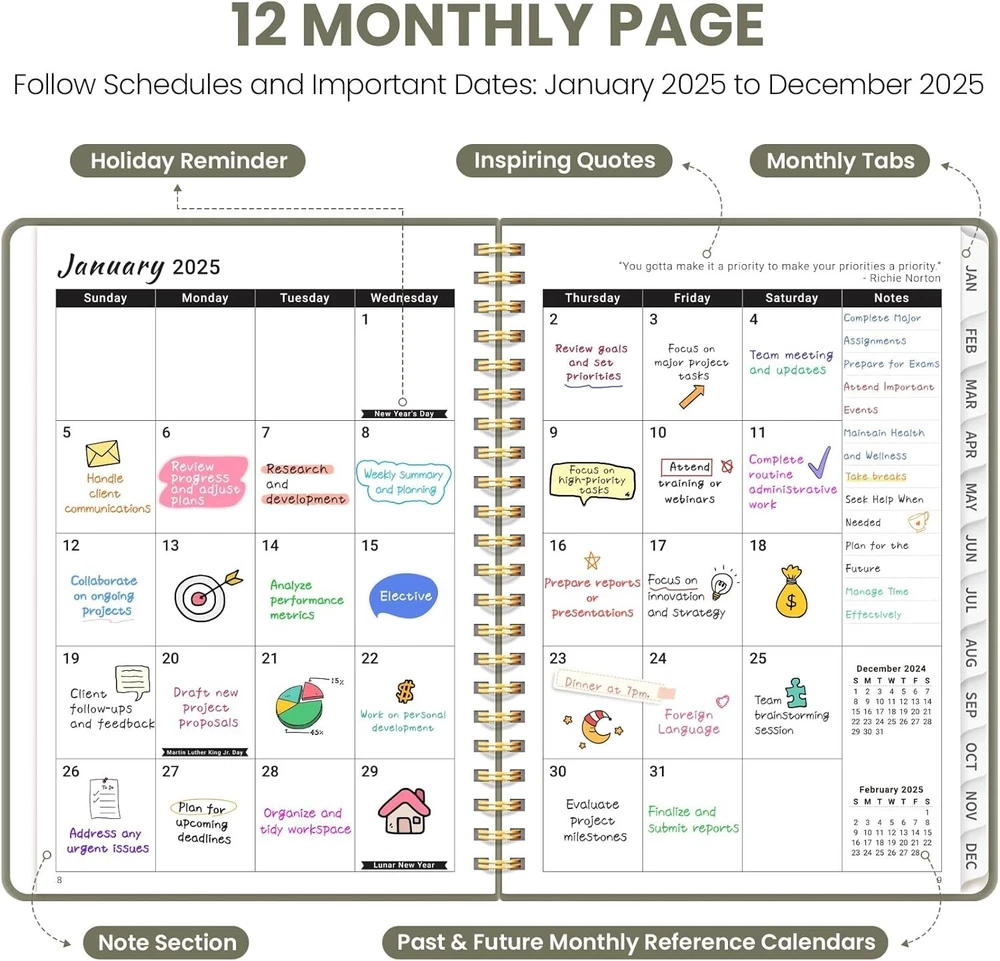 2025 Planner Weekly and Monthly Calendar January 2025 A.Green Writing