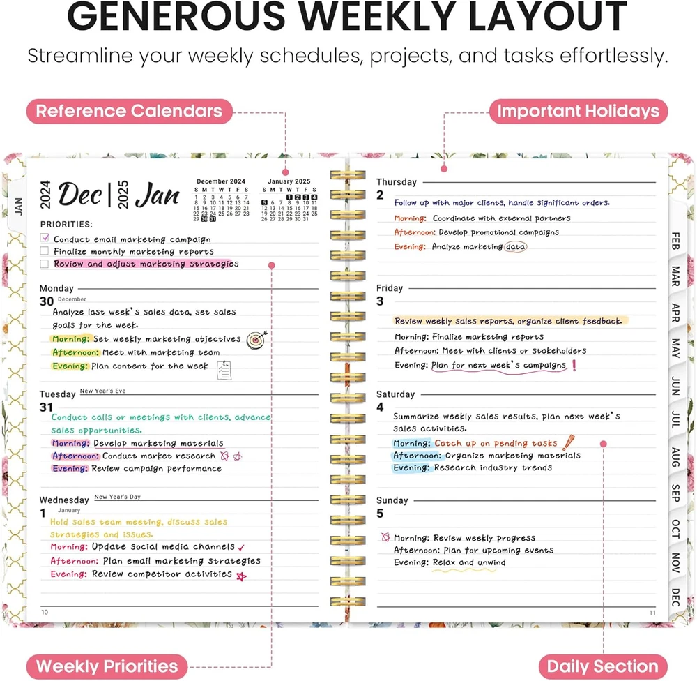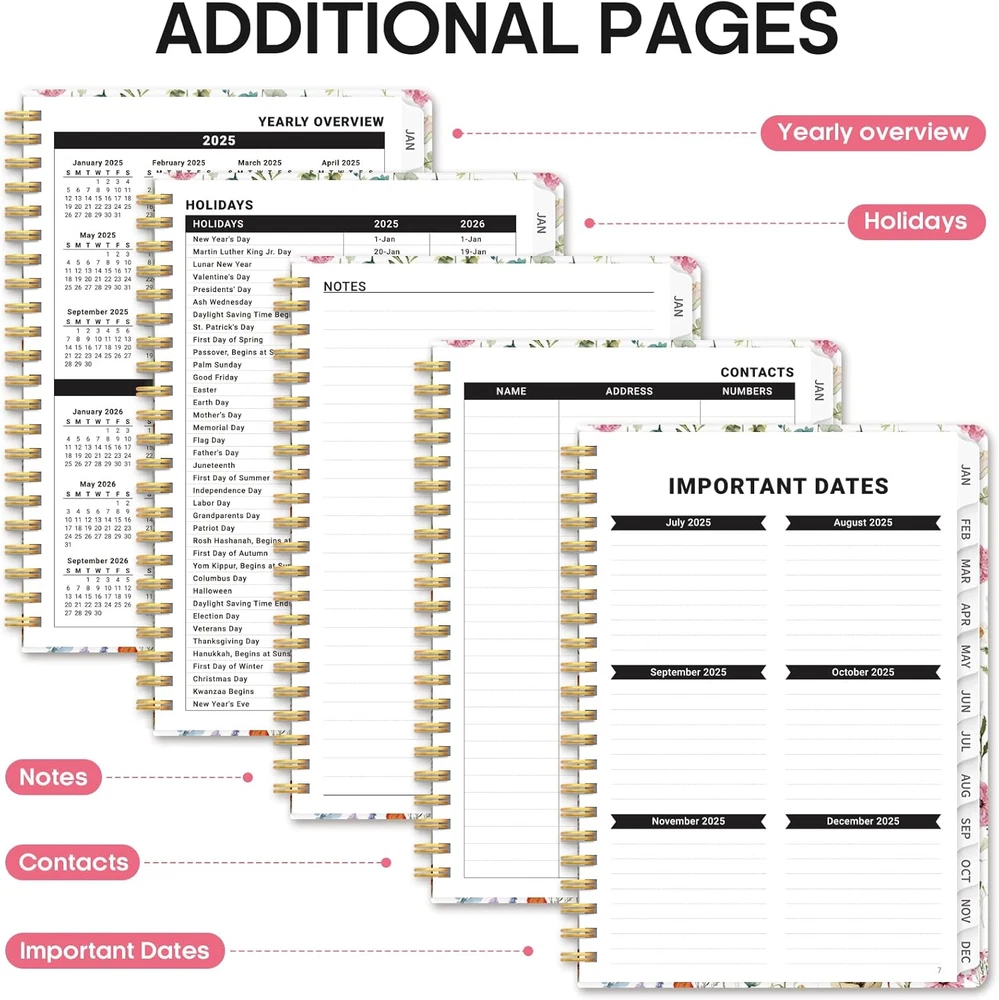 Store New Arrivals Add to Favorite View Feedback Contact Fast deliveries to the customer's home Quality customer service John Make the customers happy! 2025 Planner Weekly and Monthly, Jan 2025 to Dec 2025, Hardcover 2025 Calendar Planner Book with Tabs & Inner Pocket, Office Home School Supplies for Women & Men - A5 (6.3" X 8.5"), Spiral Bound, Wildflower Description Kickstart Your 2025 Journey: Get ready to conquer 2025 with our expertly crafted planner! Covering January to December 2025, this 6.3" x 8.5" planner strikes the perfect balance between monthly and weekly pages, making it easy to manage your work goals, appointments, and daily priorities with precisio. Effortless Monthly Management: Stay organized and ahead of the game with spacious daily blocks and holiday reminders on every monthly spread. With reference calendars for past and future months, you'll have everything you need for smooth long-term planning. Master Your Weekly Goals: Tackle your weekly objectives with ease! Each weekly page provides ample lined space for appointments, events, and to-do lists. Checkboxes make it easy to stay on track and celebrate each achievement as you progress through the week. Sleek and Functional Design: The Taja 2025 weekly and monthly planner features thick, high-quality paper and a durable hardcover that adapts to your lifestyle. With monthly tabs, twin-wire binding, and an elastic band for added convenience, this planner perfectly blends practicality with sleek design. Your Blueprint for Success: Take control of your time and unlock your full potential! Capture everything from daily tasks and notes to big ideas and important meetings. Ready to turn your dreams into reality? Order your 2025 planner today and make this year your most productive yet. Product Description Inner Pocket Safeguard Your Essential Notes and Cards in the Back Pocket of Your Planner Monthly Tabs Features 12 monthly two-sided tabs for quick checking Elastic Band The Elastic Band helps keep the inside of the planner neat, preventing pages from curling or getting damaged Twin-wire Binding Twin-Wire Binding for 180° Lay-Flat Convenience: Keep It Open on Your Desk with Ease Taja's Pens & Planners & Project Folders & Sticky Notes Add to Cart Add to Cart Add to Cart Add to Cart Add to Cart Add to Cart Add to Cart Customer Reviews 4.6 out of 5 stars 30 4.9 out of 5 stars 27 4.6 out of 5 stars 86 4.5 out of 5 stars 108 4.6 out of 5 stars 155 4.8 out of 5 stars 6 4.8 out of 5 stars 87 Price $5.99 $ 5 . 99 $8.99 $ 8 . 99 $6.99 $ 6 . 99 $5.99 $ 5 . 99 $7.99 $ 7 . 99 $6.99 $ 6 . 99 $9.99 $ 9 . 99 Size 5.7" x 8.6" A5 or B5 7" x 10" 6.5" x 3.5" 8.3" x11.7" 14.7" x 11.5" 5.3" x 8.2" Feature Hardcover Hard Cover Spiral Binding Staple Bound Staple Bound Spiral Binding Hardcover Color Multicolor Multicolor Multicolor Forest/Purple/Navy Abstract Floral Festive Pattern Multicolor Quantity 160 Pages / 80 Sheets 240 Pages / 120 Sheets 74 Pages / 37 Sheets 64 Pages / 32 Sheets 18 Months 18 Months 182 Pages / 91 Sheets Usage Scenario Office School & Home Supplies Office & Home & School Office School & Home Supplies Office School & Home Supplies Home & Office Supplies Home & Office Supplies Office School & Home Supplies Sheet Size A5 (6.3 x 8.5 inches) Calendar Type Weekly & Monthly Additional Features Hard Cover Paper Size A5 (6.3 x 8.5 inches) Color A-Wildflower Binding Spiral-bound Cover Material Paper Material Paper Material Type Paper Style A-Wildflower Pages 120 Pages Item Weight 0.73 Pounds Target Audience Officer, Teacher, Adult, Student Year 2025 Recommended Uses For Product Planning and organizing activities, tasks, and appointments Model Year 2025 ABOUT US We offer the best prices around on high quality products. Our E-store includes media such as books, movies, music and games while offering electronics, toys, sporting apparel, clothing, tools, general home, garden items and more. SHIPPING We are always working hard to ensure your package arrives as soon as possible. Please understand that some factors like weather, high postal traffic, and the performance of shipping companies are outside of our control. We offer free shipping to the lower 48 states and ship within 2 business days of payment, usually sooner. We do not accept P.O. Boxes. Please provide a physical address. For shipping outside of the continental USA, we only use eBay's Global Shipping Program. The item is shipped to KY and then sent to the rest of the world. International customers are responsible for all duties and taxes. Continue to 'check out' to calculate costs for shipping the item to your country. Messages regarding eBay's Global Shipping Program MUST be directed at eBay EXCLUSIVELY. RETURNS We offer a 30-Day Return Policy on items in which you are not completely satisfied with. You have the option of a full-refund or an exchange of the item. No returns are available on items shipped outside of the USA PAYMENT We accept PayPal. CONTACT US This page content is yet to come Please ad us to your favorite seller and visit again later Thank You CUSTOMER SATISFACTION We try our very best to make sure every customer is completely satisfied. If there's a problem, message us! We're happy to help. WE ACCEPT