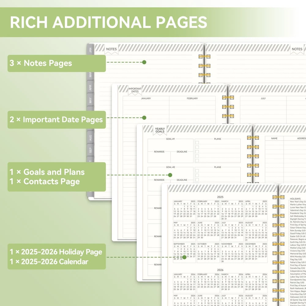 2025 Planner- Weekly and Monthly Planner, AIMPEAK 2025 Calendar Planner for Women, Jan.2025 - Dec.2025, 2025 Daily Planner with Monthly Tabs, Spiral Binding, Green, 5.5"x8.5" 📔2025 Planner: This weekly and monthly planner spans from Jan. 2025 to Dec. 2025, making it perfect for seamless 12-month planning and organization. It features functionally designed additional pages, including a calendar overview for 2025-2026, sections for personal information, goals and plans, an important dates page, holiday pages for 2025-2026 contact pages, and notes pages. 📔Clear Monthly Overview: AIMPEAK 2025 planner features 12 months of monthly pages with tabs for easy reference. Each month includes sections for goals, to-do lists, reviews, and major holidays, with elapsed and remaining days noted. Stay organized by tracking important deadlines, special events, and more. 📔Enhanced Weekly Pages: The 2025 weekly view includes sections for focus, priorities, follow-ups, appointments, habit tracking, to-dos, gratitude, and reviews, with ample space for notes. This 2025 planner provides detailed planning room, helping you stay organized and boost productivity daily and weekly. 📔Premium Features: The Aimpeak 2025 planner has a durable, waterproof PVC cover and twin-wire binding for flat, easy writing. It includes an inner pocket and pen loop for convenience. The high-quality, acid-free paper prevents ink bleeding and enhances the writing experience. Plus, it features a classic and stylish design. 📔Versatile for Every Use: The Aimpeak 2025 planner is ideal for office professionals to manage work and meeting notes, students to organize their study records, and individuals at home to keep track of daily tasks. It also makes a considerate gift for friends and family. 📔2025 Planner: This weekly and monthly planner spans from Jan. 2025 to Dec. 2025, making it perfect for seamless 12-month planning and organization. It features functionally designed additional pages, including a calendar overview for 2025-2026, sections for personal information, goals and plans, an important dates page, holiday pages for 2025-2026 contact pages, and notes pages. 📔Clear Monthly Overview: AIMPEAK 2025 planner features 12 months of monthly pages with tabs for easy reference. Each month includes sections for goals, to-do lists, reviews, and major holidays, with elapsed and remaining days noted. Stay organized by tracking important deadlines, special events, and more. 📔Enhanced Weekly Pages: The 2025 weekly view includes sections for focus, priorities, follow-ups, appointments, habit tracking, to-dos, gratitude, and reviews, with ample space for notes. This 2025 planner provides detailed planning room, helping you stay organized and boost productivity daily and weekly. 📔Premium Features: The Aimpeak 2025 planner has a durable, waterproof PVC cover and twin-wire binding for flat, easy writing. It includes an inner pocket and pen loop for convenience. The high-quality, acid-free paper prevents ink bleeding and enhances the writing experience. Plus, it features a classic and stylish design. 📔Versatile for Every Use: The Aimpeak 2025 planner is ideal for office professionals to manage work and meeting notes, students to organize their study records, and individuals at home to keep track of daily tasks. It also makes a considerate gift for friends and family. Shipping from the USA All of our products are shipped from the USA, ensuring quick delivery to your destination. Payment We offer the following payment methods: PayPal, credit card, bank transfer, and eBay's secure payment system. Free Shipping & Free Returns Shipping within the USA is FREE. Additionally, any return is absolutely free for you. Risk-Free Purchase You have the option to return an item within 30 days without any justification. We cover the return shipping costs! Fast Shipping We ship immediately upon receipt of payment. Generally, the package is delivered within 2-3 days in the USA. If it takes longer, we will contact you. Quality and Costs Made in Europe, USA, China No customs fees or additional charges Total satisfaction guarantee Invoice with declared VAT available upon request in .pdf format Feedback Your feedback is very important to us. After you pay for your purchase, you will automatically receive positive feedback from us.