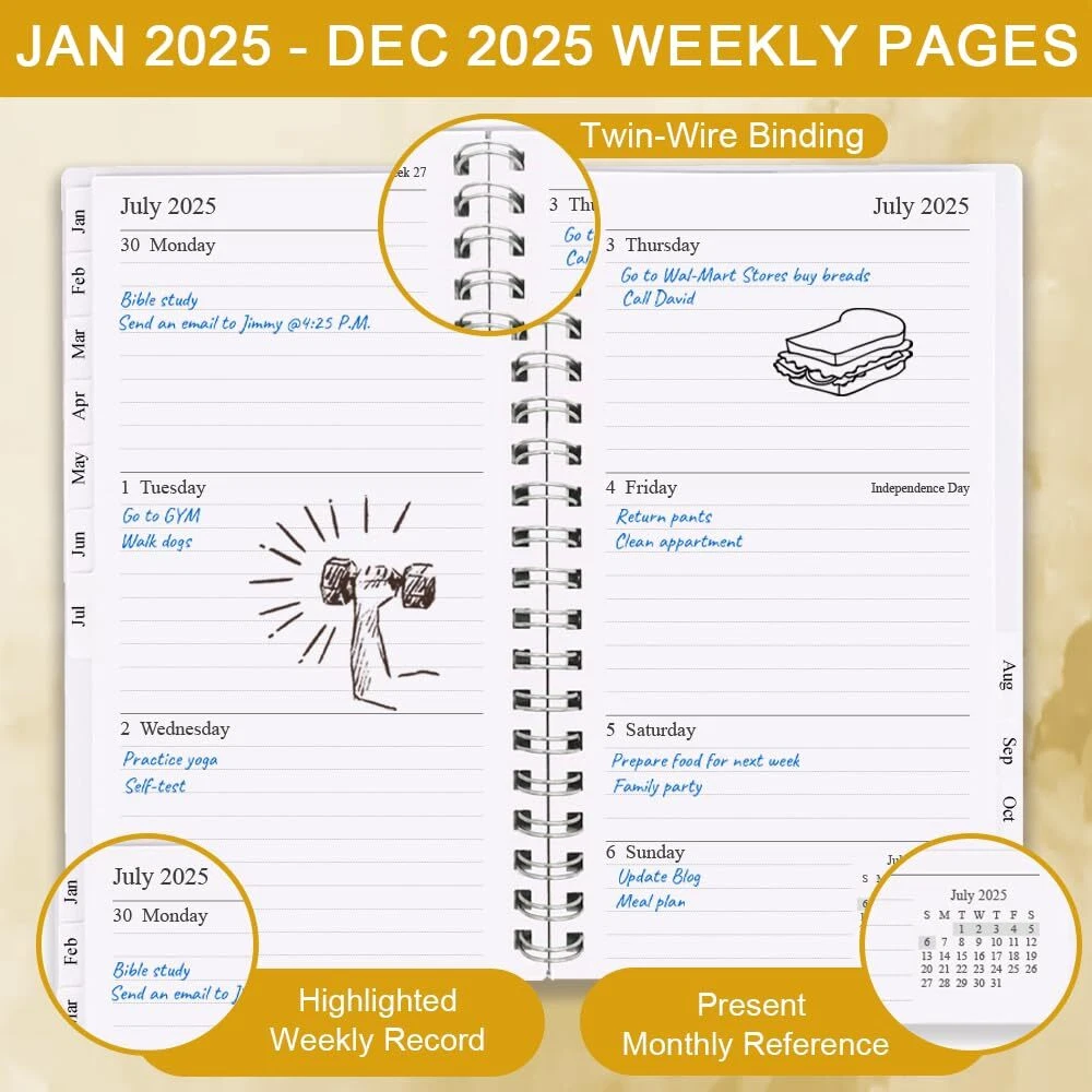 2025 Pocket Planner/Calendar - January 2025 - December 2025, A6 Weekly & Monthly Organizer Notebook & Journal to Track Goals, Easy to Organize Your Daily Life, Medium 3.75" x 6.75", Leaf This 2025 weekly & monthly planner(January 2025 - December 2025) measuring 3.75" x 6.75", planner 2025 is a simple and elegant planner which could keep you organized everywhere you go. Simple page designs and plenty of room for all of your important information. 12 Month planner contains: yearly overview (calendar of 2025-2026) holidays 2 contact pages 12 month calendar sections 53 week sections 14 notes pages(lined) Each monthly spread contains an overview of the month and a notes section. 12 month calendar, 2 pages per month. Plenty of room for notes and details. Each monthly calendar is followed by 5 weekly pages, 2 pages per week. Weekly spread include ample space to write down your daily schedule, appointments, activities, week's focus, to do list/goal and keep track of all days clearly with the weekly view. This distinctive monthly & weekly planner features high quality 100gsm white paper for easy writing and reducing ink leakage, erase fraying and shade issues, providing clean writing space for your appointments, to-dos and reminders. This monthly and weekly planner responds well to fountain pen, gel pen, roller pen, ballpoint pen, highlighter, pencil and etc. Monthly calendar tabs allow easy access to each month’s plans. Sturdy and flexible covers to protect the inner pages well, thick paper for smooth writing, strong twin-wire binding, sturdy plastic pocket to store loose items, like tickets, cards, papers etc, all these details demonstrate high quality. This personal organizer features flexible structures that allow you to keep track of goals, tasks, appointments, project, works, habbits etc. Perfect for planner, organizer, academic agenda or note pad for school, work or home or makes a great gift. Plan, create and schedule your daily life with this gorgeous monthly & weekly planner now. PLANNER OVERVIEW - 12 Month planner, January 2025 - December 2025, featuring 12 months of monthly and weekly pages for easy planning. 3.75" x 6.75", comfortable to carry and use MONTHLY - Planner 2025 each monthly spread contains an overview of the month with holidays, previous & next month calendars and a notes section. Plenty of room for notes and details WEEKLY - Weekly spread include ample space to write down your daily schedule, detailed appointments and activities and keep track of all days clearly with the weekly view TABS & POCKET & LAY FLAT BINDING - Each month is separated with laminated tabs, Inner pocket to store loose items like tickets, cards, papers etc. Durable twin-wire binding for laying completely flat SUPERIOR QUALITY - 2025 planner with sturdy and flexible cover to protect the inner pages well. Thick paper to reduce ink leakage, erase fraying and shade issues. Plan, create and schedule your daily life with this gorgeous monthly &weely planner Shipping from the USA All of our products are shipped from the USA, ensuring quick delivery to your destination. Payment We offer the following payment methods: PayPal, credit card, bank transfer, and eBay's secure payment system. Free Shipping & Free Returns Shipping within the USA is FREE. Additionally, any return is absolutely free for you. Risk-Free Purchase You have the option to return an item within 30 days without any justification. We cover the return shipping costs! Fast Shipping We ship immediately upon receipt of payment. Generally, the package is delivered within 2-3 days in the USA. If it takes longer, we will contact you. Quality and Costs Made in Europe, USA, China No customs fees or additional charges Total satisfaction guarantee Invoice with declared VAT available upon request in .pdf format Feedback Your feedback is very important to us. After you pay for your purchase, you will automatically receive positive feedback from us.