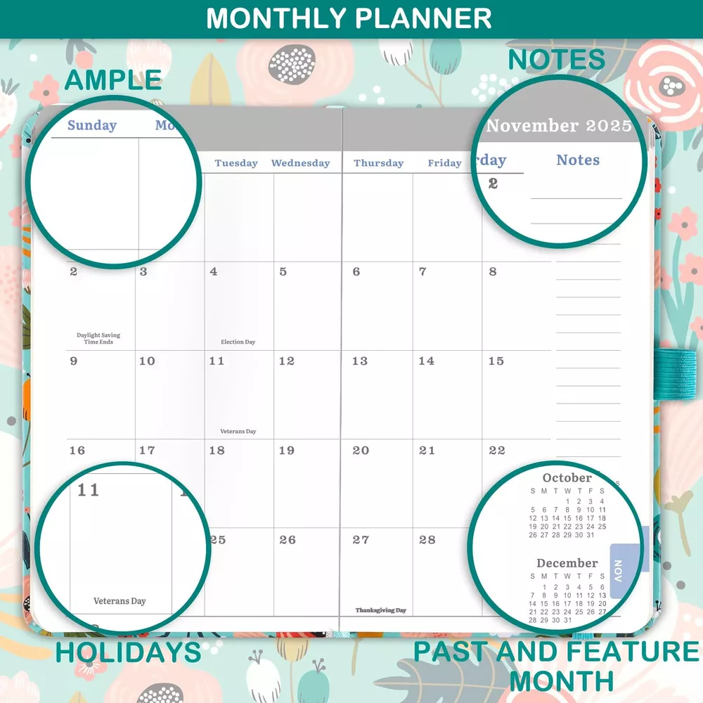 JAN 2025 - DEC 2025 POCKET PLANNER - Pocket weekly/monthly planner 2024-2025 from JAN 2025 - DEC 2025, which features with colorful cover for a better visual feast. The cute and functional 2025 pocket calendar with small size and light weight design allow you to carry it everywhere. PERFECT POCKET PLANNER 2025 - Planner 2025 can simplify your plans over a long period of time to improve your time management skill. You can write down your task, thoughts, ideas and more in the note section with the pocket calendar 2025. Besides, federal holidays highlighted in color to help you remind every important holiday. ACADEMIC PROFESSIONAL CONTENT - 12 months of ample lined weekly pages + 12 months of monthly pages with past, present and future monthly referencing + 2 contact pages + 2025-2026 calendar overview + 2025-2026 holiday pages , which are designed to meet all of your needs. 2025 PLANNER FUNCTIONAL DESIGN - Round cover design + Water resistant cover + 12 monthly tabs for quick checking + Two bookmarks for quick mark and search the page + Elastic closure for keeping planner close. Also, the monthly pocket planner 2025 have a back inside pocket for business or appointment cards. SPECIAL CHOICE - A special present you can share with your friends and family. Perfect for Christmas present, New Year presents or Birthday presents. This weekly & monthly pocket Planner 2025 can help achieve your long-term goal, improve your planning skill and to be the best yourself!