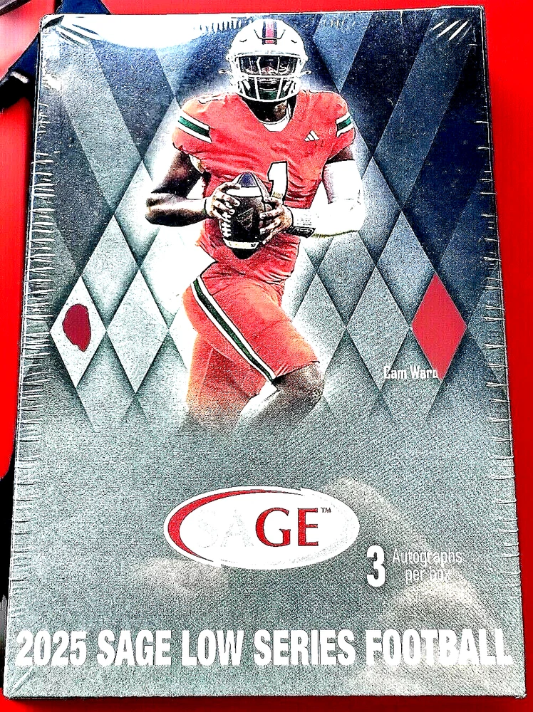 Qty. 1 - 2025 Sage Low Series Football Trading Cards - Blaster Box Features: Factory Sealed 60 cards per box Guaranteed 3 Autographs per box