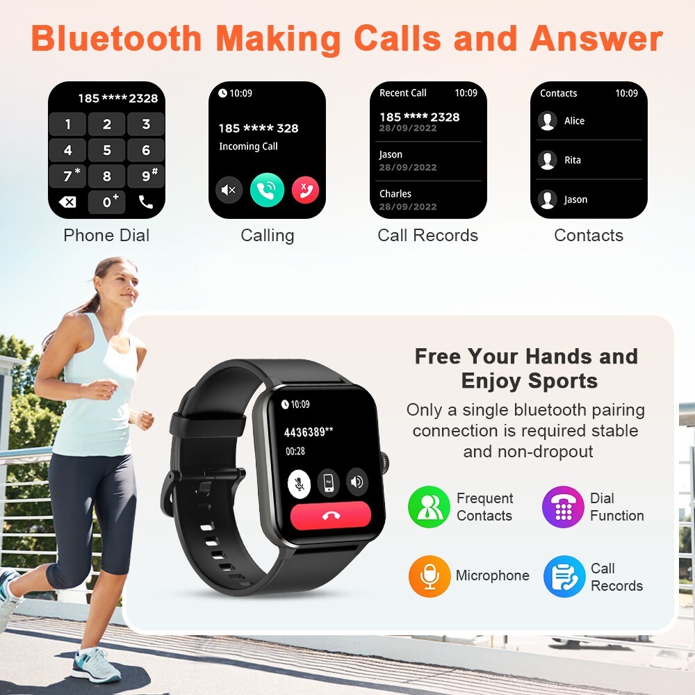 2025 Smart Watch For Men/Women, Waterproof Smartwatch Bluetooth iPhone Samsung Elevate your fitness journey with the IOWODO R50 Smartwatch, an all-in-one device designed to keep you on top of your health goals. With a robust suite of features including a heart rate monitor, blood pressure tracker, and SpO2 sensor, this watch is an indispensable tool for wellness management. The inclusion of a stress monitor aids in maintaining a balanced lifestyle, while the sleep tracker encourages restful nights. Not just a health assistant, the R50 is also a sophisticated fitness companion, offering 100 sport modes and an IP68 waterproof design for the active individual. The convenience of Bluetooth connectivity enables you to stay connected on-the-go, making calls, sending texts, and controlling your music with ease. The smartwatch is compatible with both iOS and Android systems, ensuring seamless integration with your digital life. đăAnswer/Make Calls and AI Voice AssistantăBlackview fitness watch come with built-in HiFi stereo speakers and microphone. Once connected to Bluetooth, you can directly answer or make calls through the smartwatch. The "Da Fit" app stores multiple contacts, ensuring you stay connected with family and friends anytime, anywhere. Receive real-time notifications on the smartwatch for incoming calls or messages (WhatsApp, Facebook, Instagram, etc.). Speak to the AI voice assistant for quick help, such as weather forecast, making calls, setting alarms etc. đăDIY Watch Faces & 2 Pack Watch StrapsăFashionable smartwatches for men and women are constructed from a special aluminum alloy material, which comes with two types of watch straps - Nylon watch straps and silicone watch straps. You can choose the background image for your watch face (your family, pets, or other photos that you like), and download and use it through the "Da Fit" app on the 1.85-inch full-touch HD screen. The system offers over 100 watch faces to choose from as well. đă100+ Sports ModesăWith more than 100 sports modes, this fitness tracker supports running, cycling, walking, climbing, yoga, skiing, football, and more. It tracks your daily data such as steps, time, distance, and calories, and connects to the GPS on your phone to record all your training routes and fitness using the "Da Fit" app to further motivate yourself to complete your exercise plan. It's an IP68 waterproof device that can meet your daily needs. (*NOTE: Not for sauna, hot water, swim, diving) đăMonitor Health in Real TimeăThe fitness watch for women and men uses high-performance optical sensors to monitor dynamic heart rate in real time 24/7. It can also accurately track your personal sleep and detect blood oxygen saturation and stress levels to adjust your physical condition in a timely manner. The app even offers a detailed sleep quality analysis report (light/deep/awake sleep stage), helping you adjust your lifestyle towards a healthier lifestyle. (*NOTE: This watch cannot be used as a medical diagnostic tool.) đăMore Smart ToolsăApart from the features mentioned above, this smartwatch also offers other useful daily functions such as smart notifications, music control, camera control, casual games, weather forecast, sedentary reminders, alarm clock, stopwatch, timer, etc. Compatible with most Android 6.0 and iOS 9.0 or above smartphones, it comes with a built-in large capacity battery of 350mAh, which ensures up to 7 days of use and approximately 30 days of standby with just 2 hours of charging. đ Fantastic Gift for Your Family and Friendsđ Packing List: 1 x Smart watch 1 x Replacement strap 1 x Charging cable 1 x User Manual Operation guidance: MPN Does not apply Brand IOWODO Series Smartwatch Case Color Black Band Color Black Band Material TPU Manufacturer Warranty 3 Months Network Bluetooth Model R50 Case Size 22 mm Operating System Android Wear Features Bluetooth Enabled, Fitness Tracker, Heart Rate Monitor, Sleep Monitor, 100 Sports Modes, 2Pack Watch Bands(Silicone+Nylon), Aluminum alloy case, Answer/Make calls/Quick Text Reply/AI Control, IP68 Waterproof, Notifications, SpO2, Stress Monitor, alarm, calculator, calendar, games, menstrual cycle tracker, music control, remote control to take photos on your phone, sedentary and drink water reminder, stopwatch, timer, weather Storage Capacity <1GB Compatible Operating System Android, iOS - Apple Case Material Aluminum alloy Country/Region of Manufacture United States