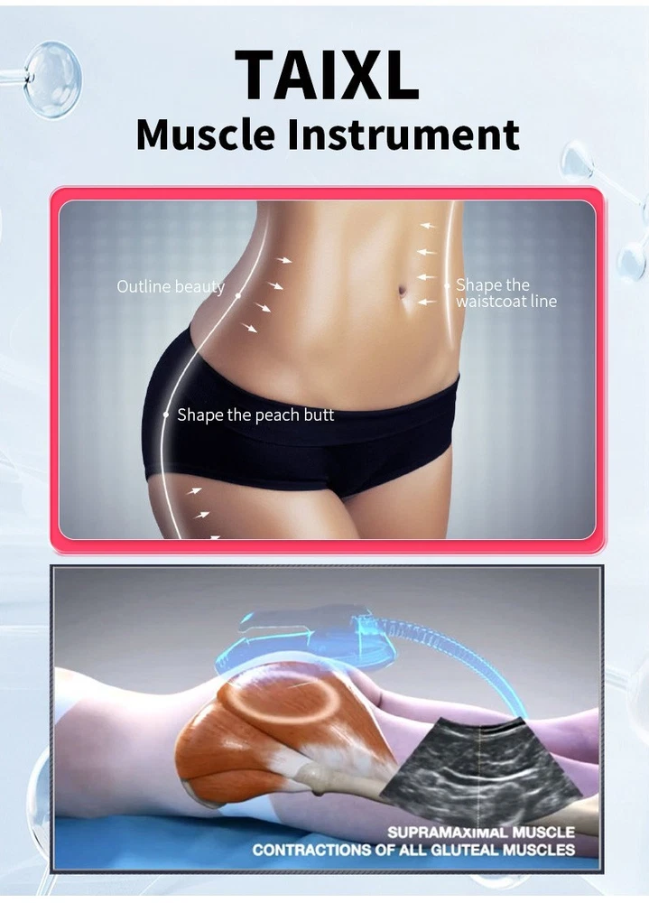 After-sales service: video technical support, online support Application: For Home Use. For Commercial Treatment area: Body arm waist abdomen buttocks upper legs Keyword 2: body toning machine Brand: taixl Voltage: 110V EM: Cellulite Reduction Function Applicable scenarios: medical spa, home, gym Keyword 1: machine Certification: CE LVD EMC ROHS Feature: Weight Loss, Cellulite Reduction,Body toning Warranty: 1 Year Target area: body, legs/arms, hands, abdomen, buttocks Fat Removal: -40% Muscle Building: +50% Material: ABS+Stainless Steel Country of Origin: China