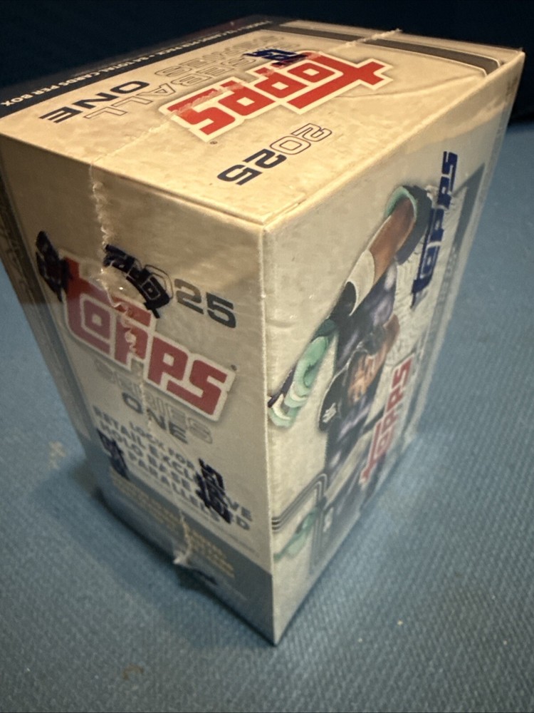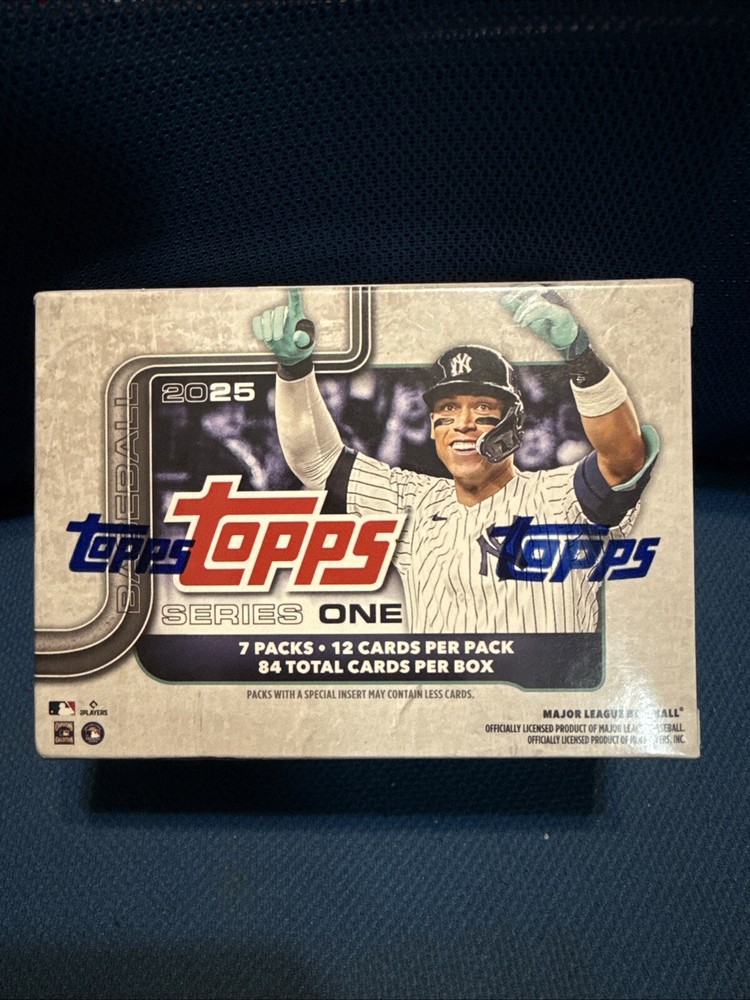 The 2025 Topps Series 1 MLB Baseball Value Blaster Box contains 84 standard-sized baseball trading cards featuring Major League Baseball players. These cards are made of card stock and come in a box configuration. The set is part of the 2025 season and includes exclusive features like holograms, short prints, rookie cards, and limited edition cards. The box is sealed and brand new.