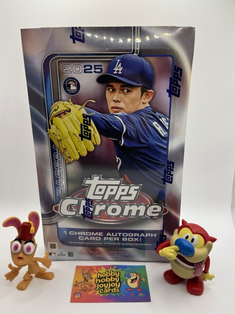 4 cards per pack, 20 packs per box. Find 1 Chrome® Autograph in Every Box! Come one, come all, 2025 Topps Chrome® Baseball is on the horizon with an all-new lineup of jaw-dropping inserts and exciting chrome parallels! Build the entire 300-card Base Set across a rainbow of color and tech parallels! All sales are final. Art subject to change. Not responsible for typographical/printer errors.