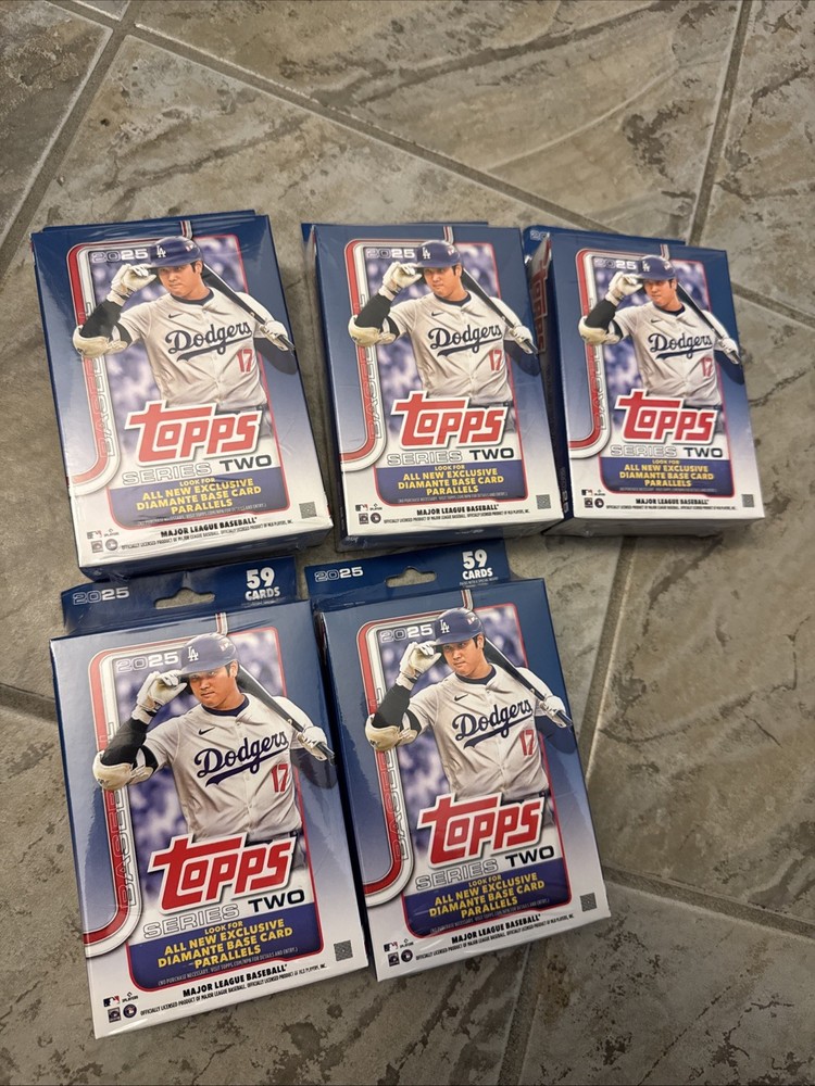 Autograph Authentication:ToppsSport:BaseballType:Sports Trading CardSeason:2025Country/Region of Manufacture:United StatesLanguage:EnglishAutographed:NoMaterial:Card StockTeam:Atlanta Braves, Chicago Cubs, Los Angeles Dodgers, New York Mets, New York Yankees, Philadelphia PhilliesPlayer/Athlete:Shohei OhtaniEvent/Tournament:MLB World SeriesConfiguration:BoxLeague:Major League (MLB)Manufacturer:ToppsFeatures:Chase, Embossed, Hologram, Insert, Parallel, Printing Plate, Rookie, Serial Numbered, Short Print, Stamped, StickerYear Manufactured:2025Vintage:NoCard Size:StandardSet:2025 Topps Series 2Number of Boxes:5