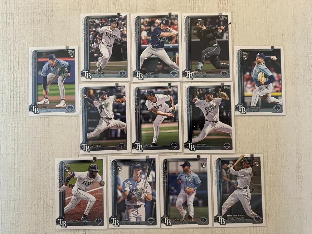 2025 Topps Update FULL Team Sets - You Pick These are FULL team sets of base cards for 2025 Topps Update Release. See the breakdown of each team set below. 2025 Topps Update is currently scheduled to release on November 12th. I expect to start shipping orders within 1 week of release. Shipping will be eBay Standard Envelope. If three or more sets are purchased, will ship in a bubble mailer. Please reach out if any questions! Team Set Breakdown Angels US15 Kyren Paris US17 Garrett McDaniels RC US24 Yoán Moncada US33 Travis d'Arnaud US121 Ryan Johnson RC US136 Kyle Hendricks US187 Caden Dana (Rookie Debut) US314 Matthew Lugo RC US319 Michael Darrell-Hicks RC US324 Ryan Zeferjahn RC US338 José Fermin RC US343 Jorge Soler Arizona Diamondbacks US110 Josh Naylor US232 Juan Morillo RC US267 Adrian Del Castillo (Rookie Debut) US272 Jose Herrera US287 Tim Tawa RC Athletics US14 Denzel Clarke RC US20 Mitch Spence US23 Gio Urshela US61 Elvis Alvarado RC US79 Willie MacIver RC US80 Lawrence Butler (Veteran Combos) US80 Brent Rooker (Veteran Combos) US95 Michel Otañez RC US104 Carlos Duran RC US143 CJ Alexander RC US180 Jacob Wilson (Rookie Debut) US197 Nick Kurtz (Rookie Debut) US201 Nick Kurtz RC US213 Logan Davidson RC US250 Max Muncy RC US252 Justin Sterner RC US254 Gunnar Hoglund RC US283 Jeffrey Springs US330 Austin Wynns US334 Luis Urías Atlanta Braves US4 Alex Verdugo US87 Drake Baldwin RC US106 Nick Allen US113 Drake Baldwin (Rookie Debut) US189 Eli White US216 Nathan Wiles RC US229 Marcell Ozuna (Veteran Combos) US229 Ozzie Albies (Veteran Combos) US296 Parker Dunshee RC US327 Spencer Schwellenbach (Rookie Debut) Baltimore Orioles US55 Tomoyuki Sugano (Rookie Debut) US97 Brandon Young RC US114 Grant Wolfram RC US146 Kade Strowd RC US171 Ramón Laureano US181 Dylan Carlson US210 Yaramil Hiraldo RC US242 Charlie Morton US274 Maverick Handley RC US282 Coby Mayo (Rookie Debut) Boston Red Sox US1 Kristian Campbell RC US36 Luis Guerrero RC US103 Walker Buehler US105 Marcelo Mayer RC US112 Romy Gonzalez US116 Aroldis Chapman US129 Kristian Campbell (Rookie Debut) US241 Marcelo Mayer (Veteran Combos) US241 Kristian Campbell (Veteran Combos) US257 Hunter Dobbins RC US276 Marcelo Mayer (Rookie Debut) Chicago Cubs US27 Justin Turner US46 Ryan Pressly US128 Kevin Alcántara (Rookie Debut) US139 Jon Berti US140 Cade Horton RC US156 Carson Kelly US164 Pete Crow-Armstrong (Season Highlights/Checklist) US200 Matt Shaw RC US214 Cade Horton (Rookie Debut) US236 Moisés Ballesteros (Rookie Debut) US248 Justin Steele US262 Moisés Ballesteros RC US309 Dansby Swanson (Veteran Combos) US309 Matt Shaw (Veteran Combos) US335 Colin Rea US345 Matt Shaw (Rookie Debut) Chicago White Sox US43 Mike Tauchman US57 Michael Taylor US145 Edgar Quero RC US159 Fraser Ellard RC US219 Mike Vasil RC US224 Tim Elko RC US253 Caleb Freeman RC US278 Shane Smith RC US294 Davis Martin US325 Edgar Quero (Rookie Debut) US337 Chase Meidroth RC Cincinnati Reds US6 Levi Jordan RC US13 Jose Trevino US58 Connor Joe US102 Luis Mey RC US150 Santiago Espinal US168 Eric Yang RC US235 Elly De La Cruz (Season Highlights/Checklist) US275 Chase Petty RC US280 Evan Kravetz RC US315 Tyler Callihan RC US318 Rhett Lowder (Rookie Debut) US331 Elly De La Cruz (Veteran Combos) US331 Matt McLain (Veteran Combos) US344 Brady Singer Cleveland Guardians US26 José Ramírez (Veteran Combos) US26 Steven Kwan (Veteran Combos) US44 Doug Nikhazy RC US67 Nic Enright RC US142 Johnathan Rodríguez US148 Carlos Santana US206 Gabriel Arias US238 Zak Kent RC US255 Will Wilson RC US284 Erik Sabrowski RC US288 Logan Allen US341 Nolan Jones Colorado Rockies US2 Zac Veen (Rookie Debut) US5 Jeff Criswell RC US8 Tanner Gordon RC US31 Zach Agnos RC US94 Adael Amador (Rookie Debut) US123 Braxton Fulford RC US124 Ryan Rolison RC US151 Chase Dollander RC US154 Antonio Senzatela US215 Jack O'Loughlin RC US246 Mickey Moniak US259 Chase Dollander (Rookie Debut) US285 Juan Mejia RC US286 Zac Veen RC US303 Tyler Freeman US321 Carson Palmquist RC US339 Thairo Estrada Detroit Tigers US42 Manuel Margot US93 Jace Jung (Rookie Debut) US118 Gage Workman RC US162 Bailey Horn RC US167 Chase Lee RC US193 Jackson Jobe (Rookie Debut) US198 Bryan Sammons RC US247 Tyler Owens RC US317 Ryan Miller RC Houston Astros US45 Cam Smith (Rookie Debut) US117 Logan VanWey RC US149 Victor Caratini US157 Colton Gordon RC US177 AJ Blubaugh RC US183 Bryan King RC US195 Isaac Paredes US292 Ryan Gusto RC US298 Cam Smith RC US323 Luis Contreras RC Kansas City Royals US65 Noah Cameron RC US83 Kris Bubic US88 Dairon Blanco US122 Tyler Tolbert RC US134 Noah Murdock RC US175 Jonathan India US176 Evan Sisk RC US192 John Rave RC US209 MJ Melendez (Veteran Combos) US209 Bobby Witt Jr. (Veteran Combos) US222 Michael Lorenzen US237 Carlos Estévez Los Angeles Dodgers US18 Evan Phillips US38 Dalton Rushing RC US70 Dustin May US77 Jack Dreyer RC US84 Shohei Ohtani (Season Highlights/Checklist) US119 Blake Snell (Veteran Combos) US119 Tyler Glasnow (Veteran Combos) US132 Anthony Banda US133 Blake Treinen US166 Miguel Rojas US199 Roki Sasaki (Rookie Debut) US239 Alex Vesia US256 Dalton Rushing (Rookie Debut) US269 Shohei Ohtani (Veteran Combos) US269 Roki Sasaki (Veteran Combos) US312 Hyeseong Kim (Rookie Debut) Miami Marlins US11 Agustín Ramírez RC US49 Michael Petersen RC US52 Liam Hicks RC US53 Luarbert Arias RC US68 Matt Mervis US99 Max Meyer US131 Cade Gibson RC US144 Jonathan Bermúdez RC US158 Lake Bachar RC US188 Graham Pauley US191 Cal Quantrill US211 Patrick Monteverde RC US220 Victor MESA JR. RC US228 Dane Myers US305 Derek Hill US310 Eric Wagaman RC US332 Agustín Ramírez (Rookie Debut) Milwaukee Brewers US30 Eric Haase US59 Caleb Durbin (Rookie Debut) US63 Connor Thomas RC US92 Drew Avans RC US137 Logan Henderson RC US169 Oliver Dunn US170 Caleb Durbin RC US233 Christian Yelich (Veteran Combos) US233 Jackson Chourio (Veteran Combos) US261 Craig Yoho RC US307 Chad Patrick RC US326 James Meeker RC Minnesota Twi