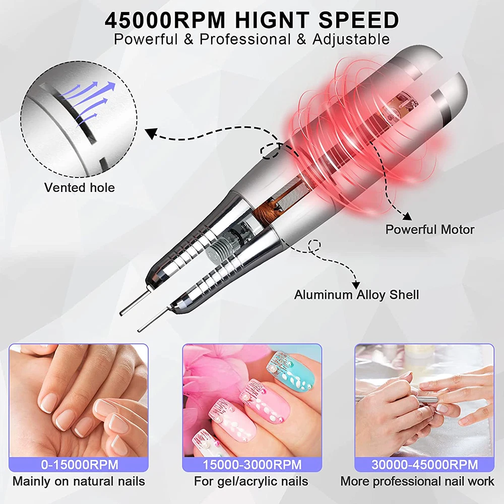2025 Upgarded 45000RPM Electric Nail Drill Machine Portable Manicure Pedicure BK