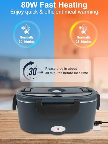 Return Policy Fast Delivery Trusted seller 2025 Upgraded 80W Heated Lunch Box with Insulated Bag, 1.5L SS Container with Lid & 0.45L Fruit Box Electric Lunch Box for Adults, 12V/24V/110V Portable Food Warmer for Home/Car/Truck (Dark Blue) Product Description 【1.95L Total Capacity with Lid】 2025 upgraded electric lunch box includes a 1.5L main compartment and a 0.45L side container, both now equipped with secure lids to keep food fresh and prevent spills. Perfect for carrying a balanced meal with different dishes. (Please note: The 0.45L compartment cannot be used for heating, it will melt.) 【Upgraded Insulated Bag】Now even more durable and efficient! The thicker insulated lining enhances heat retention, while the reinforced handle and upgraded zipper provide better durability and smoother use. The premium outer material offers a stylish and sturdy design, making it easier to carry on the go. 【80W Fast Heating】Delivers consistent and efficient heating, ensuring your meal is hot and ready in just 20-30 minutes. No need to rely on microwaves—enjoy freshly heated food anytime. Whether you're at the office, on the road, or traveling, a warm, home-cooked meal is always within reach. 【Sleek Matte Finish】This heated lunch box features a sleek frosted texture that enhances grip and aesthetics, giving it a stylish, high-end feel. The built-in utensil compartment also doubles as a phone stand, allowing you to enjoy your meal hands-free, whether at work, on the road, or during travel. 【Multi-Power Compatibility】Designed for ultimate convenience, this heating lunch box supports 12V/24V for cars and trucks and 110V for home or office, making it perfect for drivers, office workers, and travelers alike. Whether you're commuting, on a road trip, or taking a lunch break at work, you can always enjoy a hot, homemade meal wver you go. 【Easy to Clean】The removable food-grade stainless steel container is not only safe and durable but also incredibly easy to clean. Simply rinse it under water or place it in the dishwasher for hassle-free maintenance, ensuring a fresh and hygienic meal every time. The included leak-proof lids help prevent spills, keeping your bag clean and mess-free. 【One-Year 】 offers a one-year warranty on this self heating lunch box, customer support is readily available to assist you, ensuring a hassle-free experience and added peace of mind. (Please note that the outer shell of the heating lunch box should not be stored in the refrigerator, as it may cause product malfunction and pose a risk of short circuit.) Shipping Returns Payment Shipping Shipping is FREE to all addresses other than APO/PO boxes in the lower 48 states. All our stock ships from US-based warehouses. Shipped via USPS or UPS (depending on location and package weight) Unless stated otherwise, all orders will ship within 24-72 hours of your payment being processed. Check our feedback to see the great reviews of FAST shipping we offer. Returns Seller does not accept returns Payment We currently accept payment via eBay managed payments only. Once payment is cleared, we will dispatch your shipment within 1-3 business days. Please refer to the "Shipping" tab for more information regarding shipping speed to your destination.