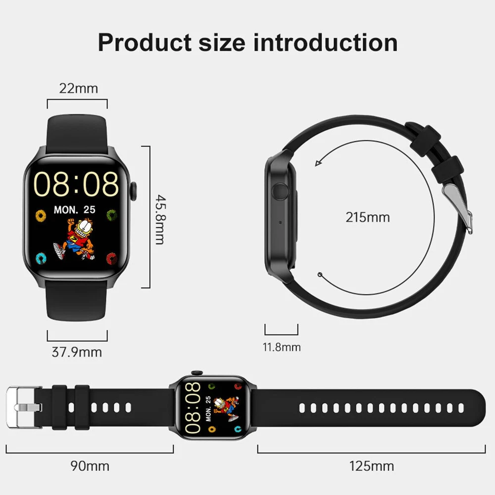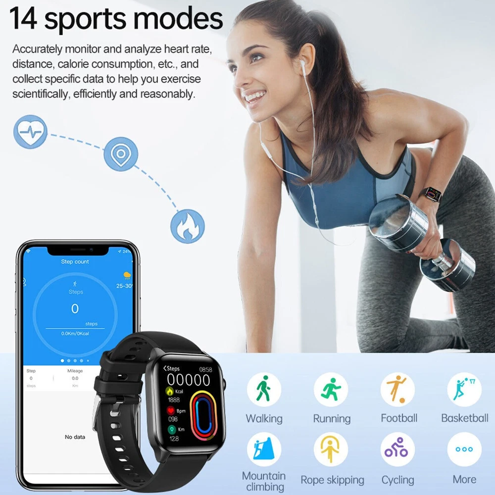 Product Description Features: ① 1.85-inch HD screen : high pixel display narrow bezel/plastic body design brings you more open visual enjoyment. Precise color E<2; viewing angle 178°; 99.5% AdobeRGB ② High-fidelity speakers : clear calls, highly reproducible human voice calls, clear and natural, super anti-interference ability; comparable to the cell phone's outgoing effect. Being in a noisy environment can also be heard clearly ③ 7/24 health monitoring : real-time monitoring of blood oxygen, blood pressure, heart rate, sleep and other functional modes. Help you always understand their own health status ④ Bluetooth call : Bluetooth one-key connection to the phone, the watch synchronized to answer calls and information, convenient, funny life work. ⑤ Information Push : Help you not miss any important information, just Bluetooth link, lift your hand to view the information of each social account. ⑥ 14 exercise modes : accurately monitor and analyze heart rate, distance, calorie consumption, etc., collect specific data to help you exercise scientifically, efficiently and reasonably. ⑦ A large number of personalized dials : to meet the diversified aesthetic, support for third-party dials, with the heart to match, to show personality ⑧ Long-lasting and durable : 15 days of ultra-long standby, exercise without power, 230mah large capacity, 5-7 days of use time ⑨ IP67 waterproof : you can rest assured that it can be used in daily life scenarios such as hand washing, rain, etc., and easily cope with the waterproof test. Specifications: Size: 44.5*37.8*11.7mm Strap: Silicone Screen Size & Resolution: 1.85inch / 240*284px Bluetooth: BLE5.2+EDR3.0 Charging method: magnetic suction Battery: 230mah Waterproof rating: IP67 Support system: for Android / for ios Package Include: 1x Smart Watch 1x Manual 1x charging cable Payment Returns Contact Us Shipping Feedback 1. We only accept eBay payments. 2. All payments must be made within 3 days after auction won. Item may be returned for refund or replacement within 30 days of the purchase date. Returned merchandise must be unused, in original packaging and include all accessories. Shipping costs are non-refundable. Please do not hesitate to leave us your 5 Star ★★★★★ of DSR positive feedback if you are satisfied with our products, delivery or services. If you have any question or unsatisfied with your purchase, please email us first to get a better solution before you leave a neutral or negative feedback. We work hard to make sure every customer 100% satisfied and resolve any problem for you. Please email us first in the following situations: 1. The item can't work properly. 2. The item broken on the post. 3. You bought or received the wrong items. 4. You have not received your shipment within the period. 5. Before you give us neutral or negative feedback. 6. Before you open a case/return on eBay. All questions will be replied within 24 hours (Except Saturday and Sunday or holidays). Thank you for your kindness! 1. eBay Payments Confirmed Addresses Only. 2. No Delivery to Alaska and Hawaii or PR. 3. No P.O. Box and APO/FPO Delivery. 4. Tracking Number will be provided. 5. Domestic shipping is within the 48 Contiguous States of United States, the delivery time is between 2 and 8 days. Items will be shipped by UPS, USPS or Fedex within 3 business day after receiving full payment. 6. International shipping is from China, the delivery time is between 10 and 30 working days. As a seller, Positive Feedback is very important to us. We try our best to let our customers to be happy. If you have any question about your order, please contact us by email and let us know. We are willing to do our best to make up for it. Thank you very much for supporting our store! Payment 1. We only accept eBay payments. 2. All payments must be made within 3 days after auction won. Returns Item may be returned for refund or replacement within 30 days of the purchase date. Returned merchandise must be unused, in original packaging and include all accessories. Shipping costs are non-refundable. Please do not hesitate to leave us your 5 Star ★★★★★ of DSR positive feedback if you are satisfied with our products, delivery or services. Contact Us If you have any question or unsatisfied with your purchase, please email us first to get a better solution before you leave a neutral or negative feedback. We work hard to make sure every customer 100% satisfied and resolve any problem for you. Please email us first in the following situations: 1. The item can't work properly. 2. The item broken on the post. 3. You bought or received the wrong items. 4. You have not received your shipment within the period. 5. Before you give us neutral or negative feedback. 6. Before you open a case/return on eBay. All questions will be replied within 24 hours (Except Saturday and Sunday or holidays). Thank you for your kindness! Shipping 1. eBay Payments Confirmed Addresses Only. 2. No Delivery to Alaska and Hawaii or PR. 3. No P.O. Box and APO/FPO Delivery. 4. Tracking Number will be provided. 5. Domestic shipping is within the 48 Contiguous States of United States, the delivery time is between 2 and 8 days. Items will be shipped by UPS, USPS or Fedex within 3 business day after receiving full payment. 6. International shipping is from China, the delivery time is between 10 and 30 working days. Feedback As a seller, Positive Feedback is very important to us. We try our best to let our customers to be happy. If you have any question about your order, please contact us by email and let us know. We are willing to do our best to make up for it. Thank you very much for supporting our store! You may also like 2025 Smart Watch For Women Men For iPhone Samsung, Sports 1.85 inch Waterproof 36.99 USD 3.99 USD powered by