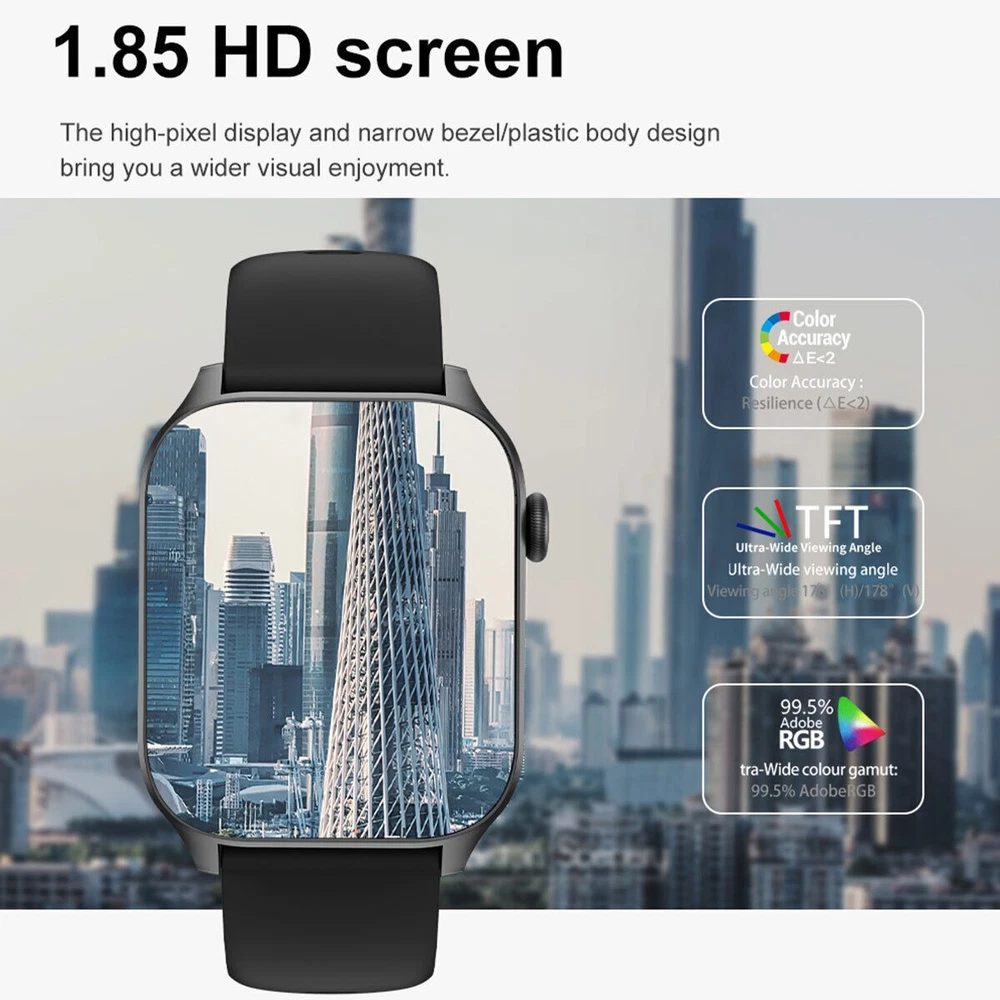 This smartwatch is a game-changer! The 1.85-inch HD screen looks crisp and vibrant, making everything easy to read. Calls come through crystal clear thanks to the high-fidelity speakers—even in noisy areas. I love the 24/7 health tracking that monitors my heart rate, blood oxygen, and sleep without missing a beat. The waterproof design means I never have to take it off, whether I'm working out or caught in the rain. Super comfortable and stylish, it works flawlessly with both iPhone and Samsung. For the price, the features are incredible—highly recommend!
