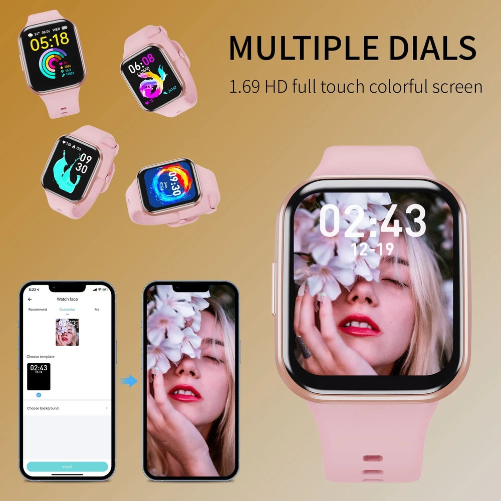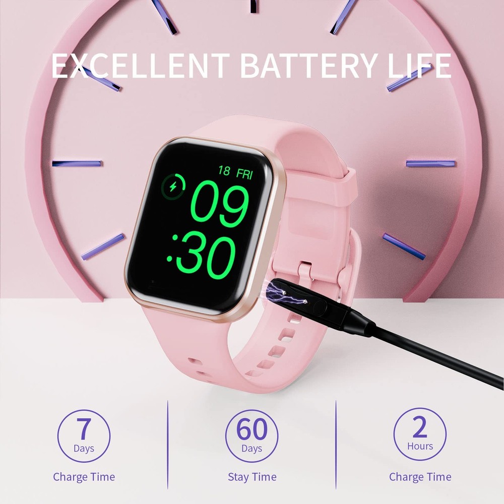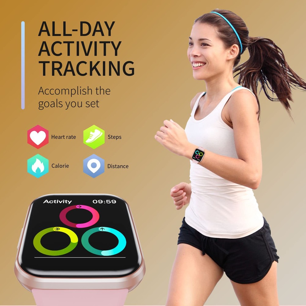 Combining a sleek design with comprehensive wellness tracking, this 1.69β Pink Smart Watch is perfect for active lifestyles. Whether you're working out, monitoring your health, or staying connected on the go, this fitness watch keeps it all in one place β right on your wrist. π Features: π₯οΈ LARGE 1.69β FULL TOUCH HD DISPLAY: Features a bright 240Γ280 resolution screen with intuitive full-touch controls . Scratch-resistant, lightweight, and comfortable for men, women, and teens , the elegant design fits most wrist sizes and offers a modern, stylish look. πβοΈ 25 SPORTS MODES & FITNESS TRACKING: Track your performance in 25 sports like running, cycling, hiking, yoga, treadmill , and more. Automatically records steps, distance, calories burned , and syncs to your phone for easy progress viewing. π 24/7 HEART RATE & SLEEP MONITORING: Monitors your real-time heart rate , blood pressure , blood oxygen , and sleep stages (light, deep). Get data-driven insights into your daily wellness. (Not intended for medical use.) π² CALL, TEXT & APP NOTIFICATIONS: Receive call alerts, SMS, and notifications from WhatsApp, Facebook, Messenger, Instagram, and more. Stay connected without constantly checking your phone. π΅ MULTIFUNCTION TOOLKIT ON YOUR WRIST: Includes: Music & Camera Control Weather Forecast Alarm Clock & Stopwatch Find My Phone/Watch Sedentary Reminders Exclusive watch faces & wallpapers Custom dial creation via app π§ IP67 WATERPROOF RATING: Safe to wear during handwashing, rain, and workouts . (Not suitable for swimming or soaking.) π 7-DAY BATTERY LIFE + FAST CHARGING: Charges in just 2 hours and lasts up to 7 days on one charge β with 30-day standby . Optimized for low power consumption without sacrificing performance. π Item Specifics: Screen Size: 1.69" Full Touch HD Display Resolution: 240 Γ 280 Sports Modes: 25+ Sensors: Heart Rate, Sleep, Blood Pressure, SpO2, Step Counter Battery Life: 7 Days (30 Days Standby) Charging Time: ~2 Hours Waterproof Rating: IP67 Compatibility: Android 4.4+ / iOS 8.0+ App: Keep Health Bluetooth Version: 4.0+ Color: Pink Target Audience: Unisex β Men, Women, Teens π¦ Package Includes: β 1 x Smart Watch (1.69β Pink) β 1 x Charging Cable β 1 x User Manual We offer 1-5 Days Free shipping & 30-Days Free returns