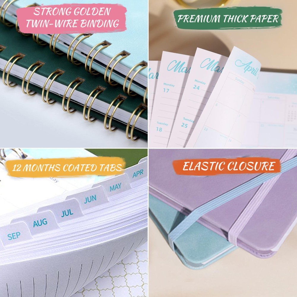 Stay organized and on top of your schedule with this 2025 Planner Weekly and Monthly Academic Planner. Designed with a faux leather cover and premium pages, this planner offers a sleek and professional look. Measuring 6.4" x 8.5", it's the perfect size to carry with you wherever you go. The twin-wire binding and tabbed months make it easy to flip between sections, while the elastic closure keeps everything secure. With daily calendar pages from January to December 2025, you can plan your entire year in detail. The included pocket provides a convenient place to store important documents or notes. Whether you're a student, professional, or just looking to stay organized, this yearly agenda is an essential tool for managing your busy life. 2025 Planner Overview: This 2025 planner weekly and monthly is an ideal partner for keeping organised, from Jan 2025 to Dec 2025, 100 gsm premium thick paper, providing a smooth writing experience and preventing ink bleed-through. Size 6.4" x 8.5", easy to carry in a handbag or backpack for on-the-go planning. Soft and smooth skin feeling leather surface makes this 2025 monthly weekly planner notebook more distinctive and premium texture. Perfect for work, school, home Professional Content Design:This 2025 calendar monthly planner is so well organized, its layout corresponds perfectly to all your daily needs, it comes with Quick Reference Information, Calendar 2025 2026 Yearly Overview, UK/US/CA Holidays Reminder, the whole Month Overview, To-Do lists and Notes. With ample space for notes, appointments, and detailed daily planning, this calendar book is a comprehensive planning tool for busy individuals More Practical Functionalities:Monthly Tabs / Inner Pocket / Spiral Bound / Elastic Closure, enhancing usability and organization. High quality and well-made, secure and durable. The spiral planner 2025 perfect as a life day planner, academic planner, school planner 2025, appointment planner, work planner , happy planner 2025, student/teacher planner 2025 or Personal Organiser Convenient Monthly View: Each monthly spread of the 2025 monthly planner contains an overview of the month and a to do list section, offering a comprehensive snapshot of the schedule. Easily plan and prioritize tasks, deadlines, and events with just a glance, Stay organized and inspired throughout Efficient Weekly View:The week is shown using two pages, with each day having enough room to put appointment times, addresses, to-do lists. Note Section for to schedule your week ahead, jot down summary and review of the week