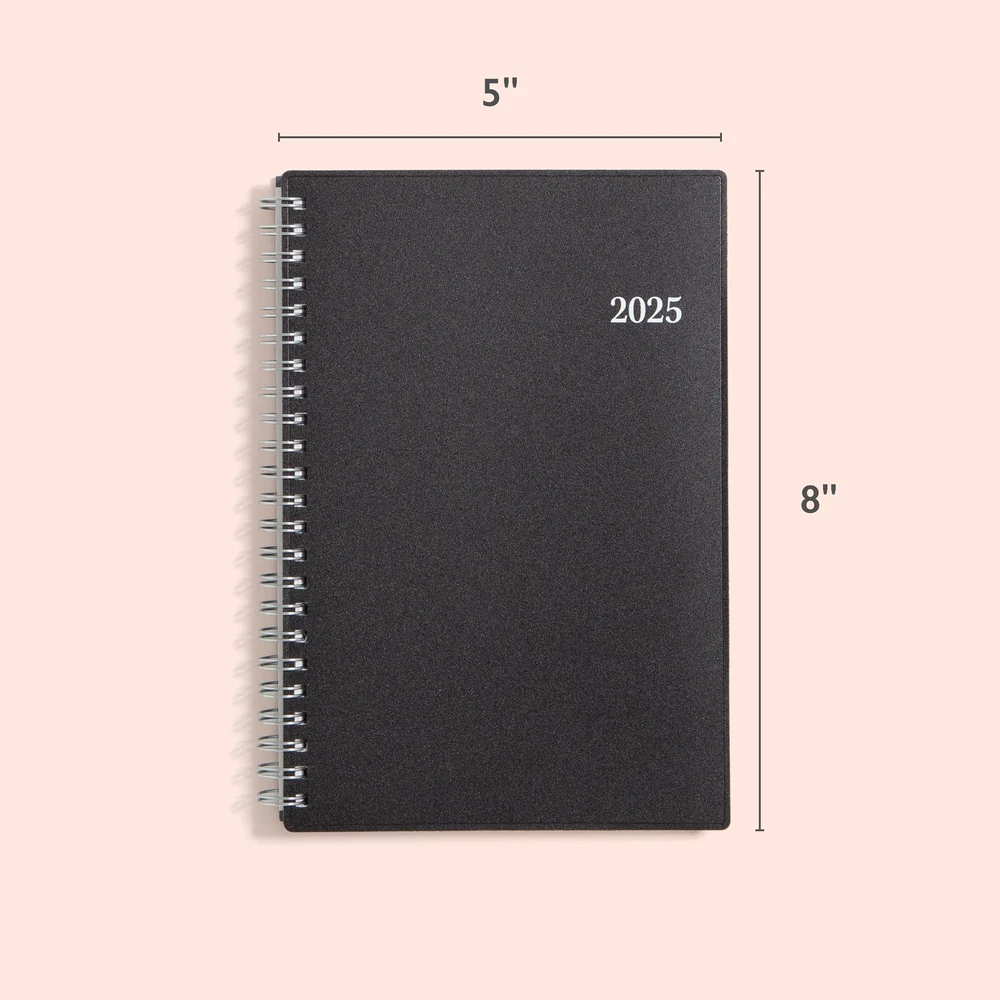 January 2025 - December 2025 day planner with 12 months of monthly and weekly pages for easy year-round planning; 6 additional monthly pages (July 2024 - December 2024) are included Monthly view pages contain previous and next month reference calendars for long-term planning, and a notes section for important projects; Major holidays listed, elapsed and remaining days noted Weekly view pages offer ample lined writing space for more detailed planning, allowing you to keep track of your appointments, reminders, ideas and to-do lists every day of the week Yearly calendar planner includes a convenient list of holidays, reference calendars, contacts pages and extra notes pages to accommodate your scheduling needs Printed on FSC-certified paper for clean writing space, with premium quality covers in rich colors and durable, coated tabs that withstand constant use throughout the year