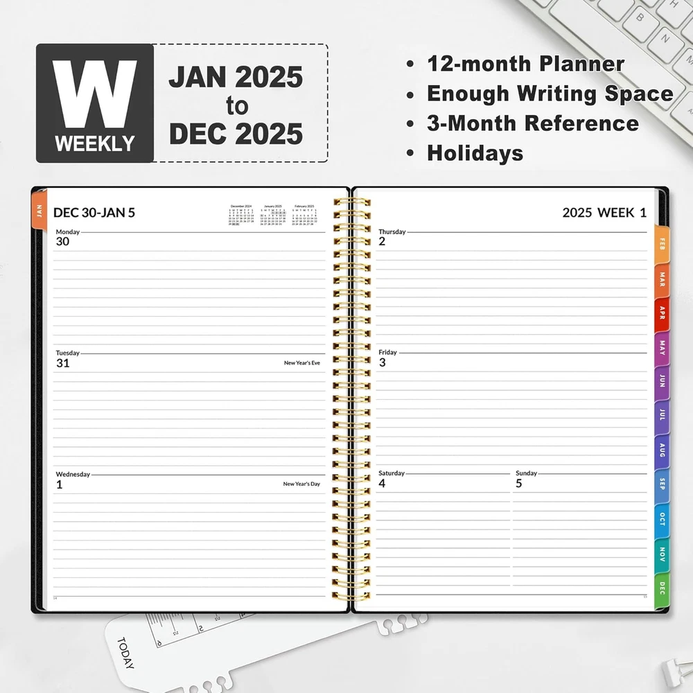 Store New Arrivals Add to Favorite View Feedback Contact Fast deliveries to the customer's home Quality customer service John Make the customers happy! 2025 Weekly and Monthly Planner - from January 2025 - December 2025, 8.5"X11" Daily Agenda Planner with Monthly Tab, Flexible Cover, Note Pages, Pockets, Bookmark, Spiral Binding, Black Description 2025 Professional Planner - Cover from January 2025 to December 2025, Features 12 months of monthly and weekly pages, and also inclueds 3 extra monthly pages for October to December 2024 and 12-monthly tabs, with Lay-flat capability for all your planning and scheduling needs, and measures 8.5" x 11" Monthly View - Each date box provides ample writing space and includes the previous and next month's reference, ruled daily blocks with popular holidays, and Julian Dates for easy long-term project and appointment scheduling. Weekly View - 2-page weekly spread from Monday to Sunday provides generous lined writing space along with popular holidays and 3-month reference previews, allowing for easy appointment, note, and daily task management. Fight Ink-bleeding Thick Paper - Made with premium heavyweight paper to prevent ink bleed. The 8.5x11" size offers enough space for organization and scheduling. Sturdy notebooks withstand frequent transfers in and out of backpacks, briefcases, and cars. Additional Features - The weekly planner includes 2025-2027 calendars, year schedule for full year 2025, holiday lists, contact pages, notes pages, important dates, and US time zone map. Rainbow monthly tabs simplify navigation and add a stylish, playful element to the planner's aesthetic. Product Description 1 Family&School Organizer 2 Perfect Work Planner 3 Easy to Carry SUNEE‘s Selection For You Add to Cart Add to Cart Add to Cart Add to Cart Add to Cart Add to Cart Customer Reviews 4.6 out of 5 stars 1,252 4.6 out of 5 stars 1,252 4.6 out of 5 stars 1,252 4.6 out of 5 stars 1,252 4.6 out of 5 stars 1,252 4.6 out of 5 stars 1,252 Price $12.99 $ 12 . 99 $16.99 $ 16 . 99 $16.99 $ 16 . 99 $15.99 $ 15 . 99 $14.99 $ 14 . 99 $16.99 $ 16 . 99 Time JAN 2025 - DEC 2025 JAN 2025 - DEC 2025 JAN 2025 - DEC 2025 JAN 2025 - DEC 2025 JAN 2025 - DEC 2025 JAN 2025 - DEC 2025 Size 8.5"x11" 8.5"x11" 8.5"x11" 8.5"x11" 8.5"x11" 8.5"x11" Color Black Eucalyptus Marble Sage Green Greenery Purple Monthly Tab ✔ ✔ ✔ ✔ ✔ ✔ Bookmark ✔ ✔ ✔ ✔ ✔ ✔ Sheet Size A4 Calendar Type Gregorian Format Notebook, Organizer Color Black Binding Calendar Material Paper Material Type Paper Manufacturer Part Number S-W2718 Package Dimensions 11.06 x 8.82 x 0.75 inches Item Weight 1.23 pounds Year 2024 Special Feature Rainbow Monthly Tabs Cover Material Cardstock or Cardboard or Paper Size 8.5"x11" ABOUT US We offer the best prices around on high quality products. Our E-store includes media such as books, movies, music and games while offering electronics, toys, sporting apparel, clothing, tools, general home, garden items and more. SHIPPING We are always working hard to ensure your package arrives as soon as possible. Please understand that some factors like weather, high postal traffic, and the performance of shipping companies are outside of our control. We offer free shipping to the lower 48 states and ship within 2 business days of payment, usually sooner. We do not accept P.O. Boxes. Please provide a physical address. For shipping outside of the continental USA, we only use eBay's Global Shipping Program. The item is shipped to KY and then sent to the rest of the world. International customers are responsible for all duties and taxes. Continue to 'check out' to calculate costs for shipping the item to your country. Messages regarding eBay's Global Shipping Program MUST be directed at eBay EXCLUSIVELY. RETURNS We offer a 30-Day Return Policy on items in which you are not completely satisfied with. You have the option of a full-refund or an exchange of the item. No returns are available on items shipped outside of the USA PAYMENT We accept PayPal. CONTACT US This page content is yet to come Please ad us to your favorite seller and visit again later Thank You CUSTOMER SATISFACTION We try our very best to make sure every customer is completely satisfied. If there's a problem, message us! We're happy to help. WE ACCEPT
