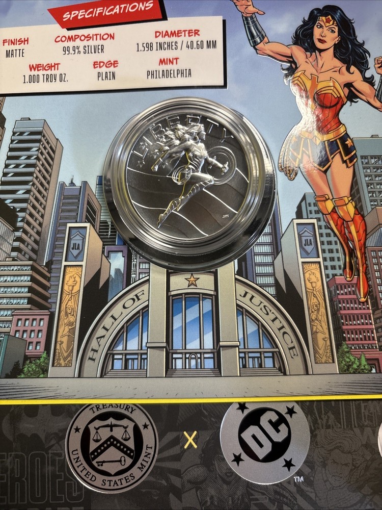 IN HAND - READY TO SHIP For sale is one (1) 2025 Wonder Woman Comic Art Silver One ounce Medal from the United States Mint Comic Art Program. 2025 Wonder Woman one ounce Silver Comic Art medal Part of the U.S. Mint Comic Art Program Minted at the Philadelphia Mint Includes Certificate of Authenticity COA Condition: The medal is in excellent condition and will come with original U.S. Mint packaging and COA. Features themed Wonder Woman designs on both sides. Shipping: FREE shipping with tracking and insurance. Your item will be securely packaged for safe delivery.