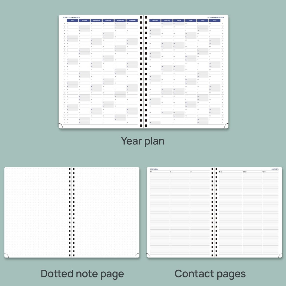 MONTHLY ACADEMIC PLANNER 13 MONTHS JULY 2025-JULY 2026 WITH SOFT COVER JULY 2025 - JULY 2026 ACADEMIC PLANNER: This planner covers 13 months of 2025-2026 academic year with an approximate A4 size(8.5'' X 11.25''), which permits large writting space. It is perfectly tailored for students to fit in with their school schedule. 2 PAGES PER MONTH: This 2025-2026 monthly planner (Jul.2025 - Jul.2026) presents a spacious and unique calendar-like design, each month has a 2-Page spread with dotted and lined notes to help you manage deadlines and goals effectively. BONUS FEATURES: The "TODAY" Ruler, Tear-Off Corners and Stair-like Monthly Tabs enable easy locating of the current date. Bookmark Ribbons are included to mark important pages.The Elastic Closure ensures the planner securely closed, while the self-adhesive Pen holder holds your pen. Additionally, 2 Foldable Pocket offers a convenient space to store important documents. EXTRA FUNCTION PAGES: This monthly calendar also contains "2025-2026 Yearly Overview" Pages + "2025-2026 Holiday & Calendar" Pages + Contact Pages + Password Pages + Dotted Notes Pages, providing space for recording important information and enhancing organization. THICK PAPER: The use of high-quality 100GSM paper from sustainable forests makes it silky smooth to write on and ink resistant, bringing you the ultimate writing experience.