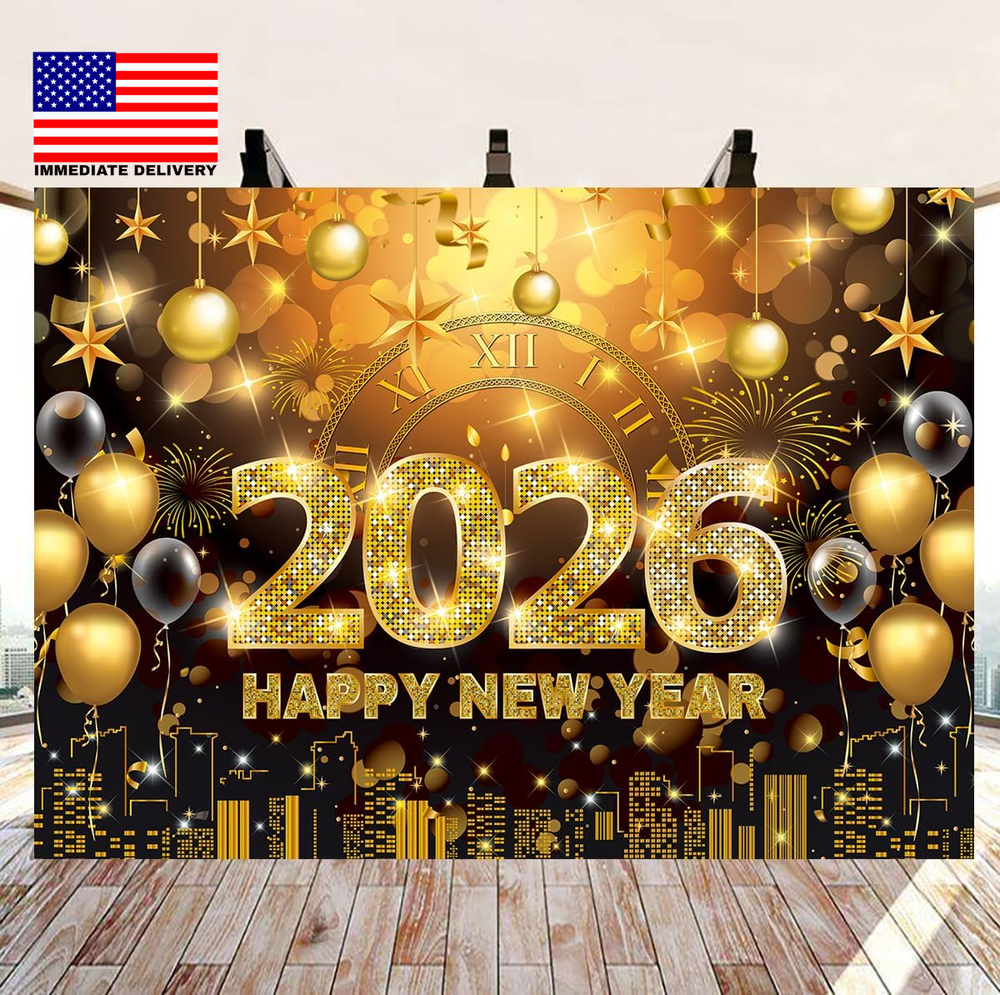 $ 6.96Happy New Year Backdrop 2026 Background Banner Large Size New Years Eve Photo Bo