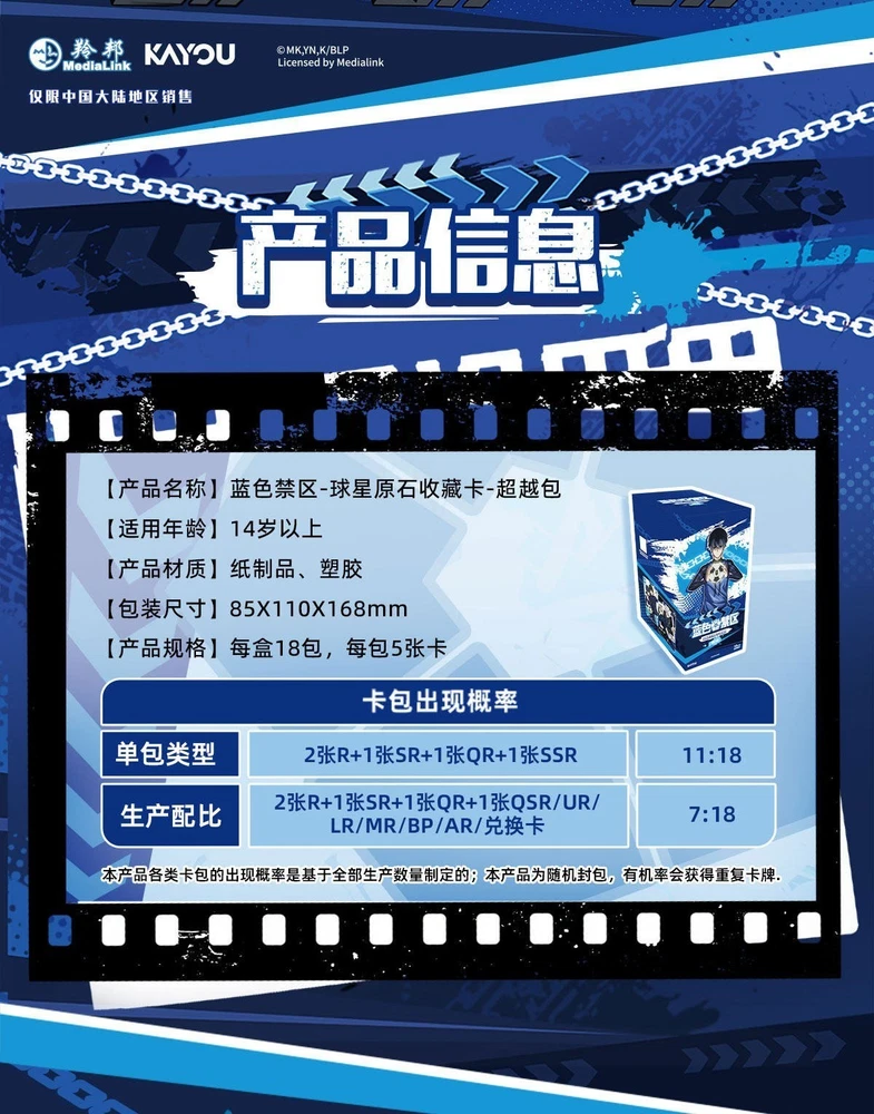 2026 KAYOU BLUE LOCK Collection Trading Card Booster Box Sealed Box Features Product specification: 5 cards/pack, 18 packs/box 100% Authentic Product G eneral policy Dear customers, if you have any questions, please contact us through ebay message or call us before submitting a complaint or leaving a message. We will do our best to solve any problems and provide you with the best service. T ransportation policy The delivery time of this store is 5 working days, usually we will deliver within 4 natural days. Return policy If you want to return, exchange or refund the goods, please contact us first. Direct return of purchased goods will not be accepted. The product must be returned in its brand-new condition, including all accessories and documentation (such as the original packaging). The return acceptance period is 30 days from the date of receipt, provided the item remains unopened and unused. Buyers are responsible for covering shipping costs unless returns are due to product defects. If the product is defective or damaged at the time of delivery, please contact us immediately and we will try our best to solve your problem. Our goal is to make our customers completely satisfied. We are very honored to provide you with quality service.
