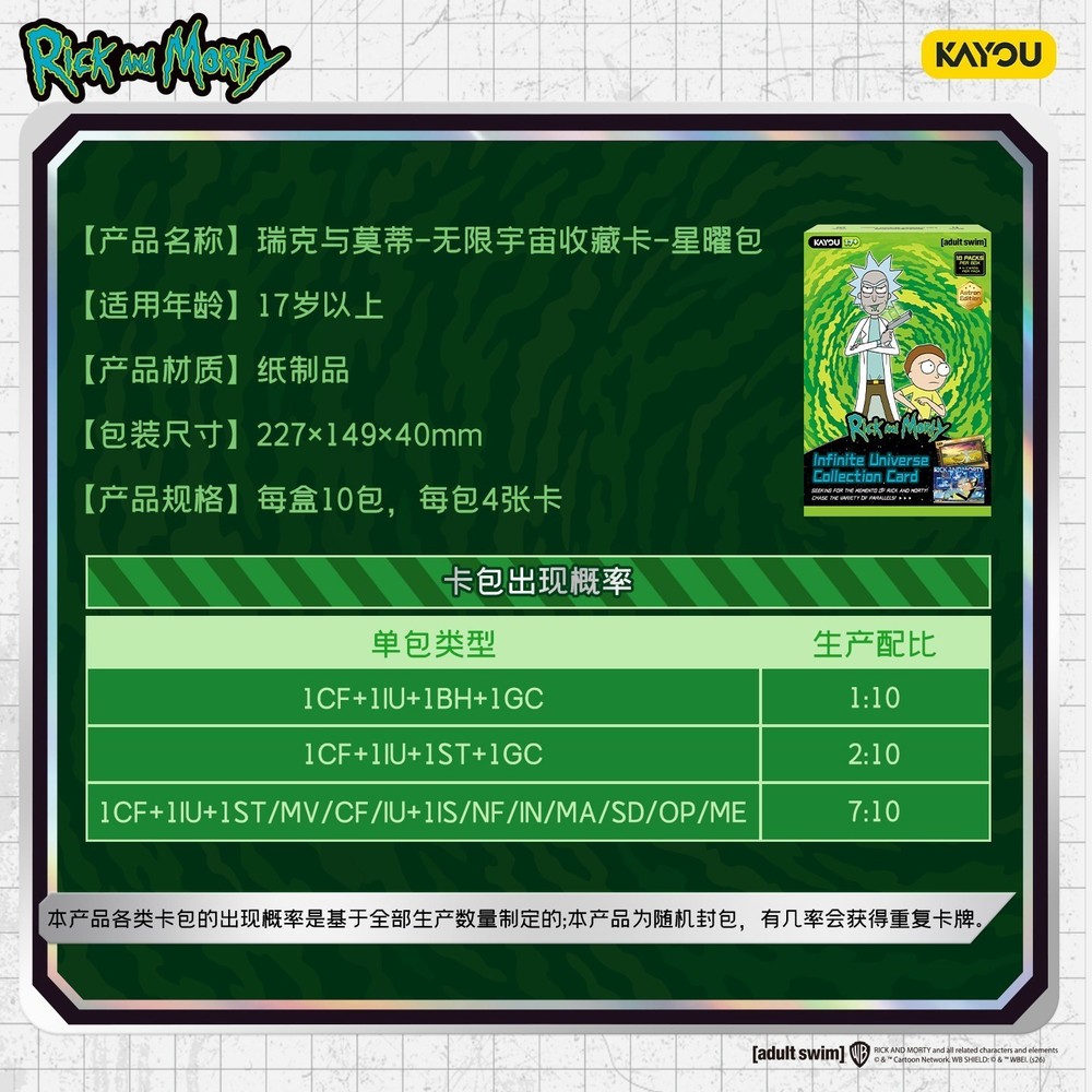 2026 Kayou Rick and Morty Collection Trading Card Booster Box Features Product specification: 4 cards/pack, 10 packs/ box 100% Authentic Product G eneral policy Dear customers, if you have any questions, please contact us through ebay message or call us before submitting a complaint or leaving a message. We will do our best to solve any problems and provide you with the best service. T ransportation policy The delivery time of this store is 5 working days, usually we will deliver within 4 natural days. Return policy If you want to return, exchange or refund the goods, please contact us first. Direct return of purchased goods will not be accepted. The product must be returned in its brand-new condition, including all accessories and documentation (such as the original packaging). The return acceptance period is 30 days from the date of receipt, provided the item remains unopened and unused. Buyers are responsible for covering shipping costs unless returns are due to product defects. If the product is defective or damaged at the time of delivery, please contact us immediately and we will try our best to solve your problem. Our goal is to make our customers completely satisfied. We are very honored to provide you with quality service.